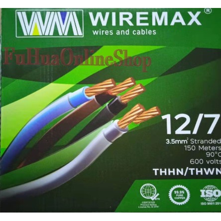WIREMAX THHN/THWN STRANDED WIRE GAUGE 12/7 (3.5mm) 150 METERS PER BOX 100% PURE COPPER