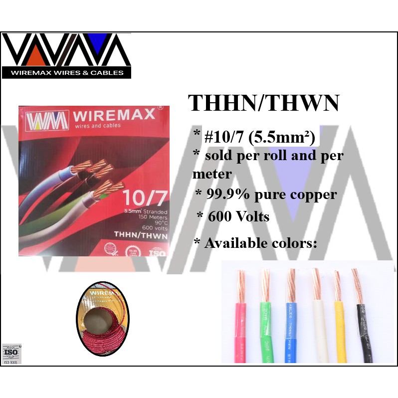 WIREMAX THHN/THWN Stranded Wire #10/7 (5.5mm) 150 METERS PER BOX 100% PURE COPPER