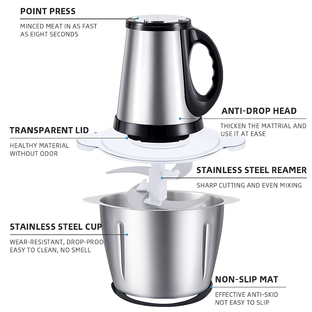 WJM 2L 3L 5L Handle Steel Meat Grinder, Home Cooking Machine blender purpose Cutter, Food Chopper