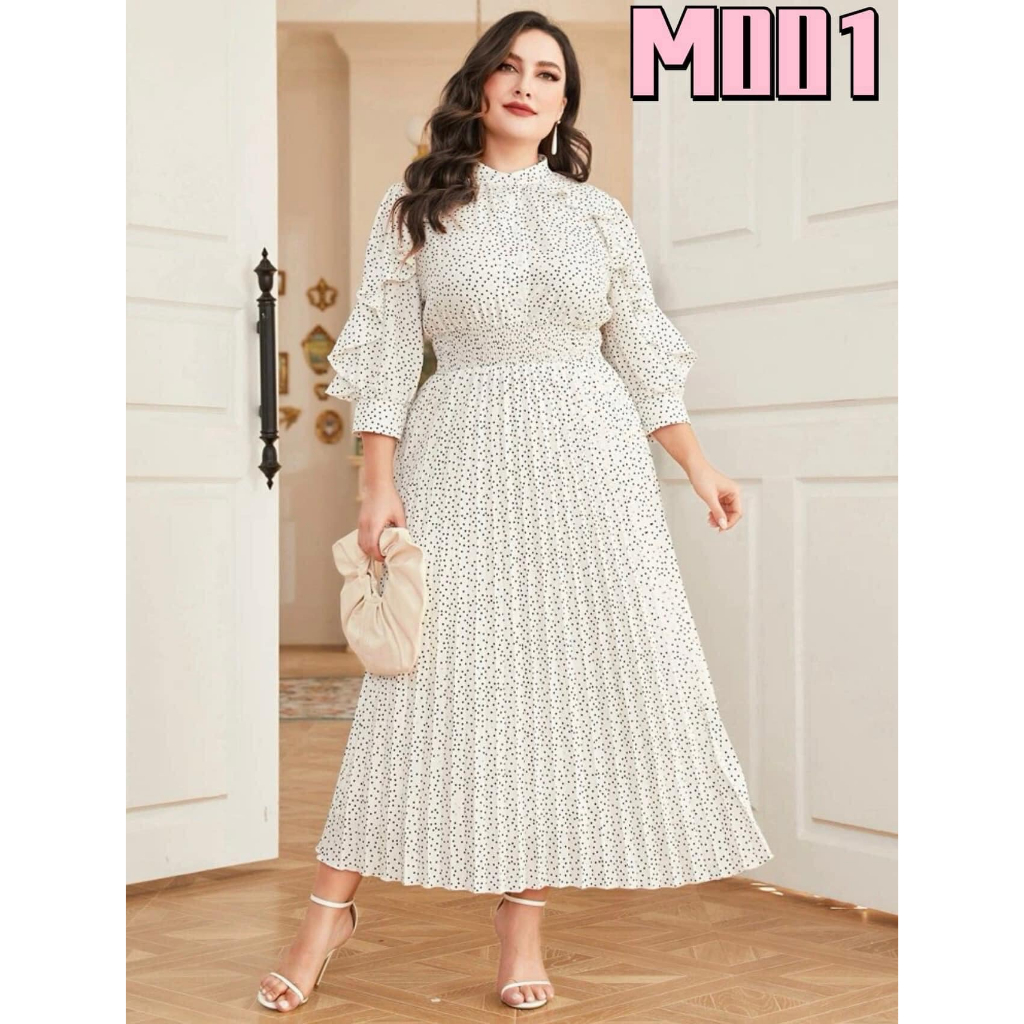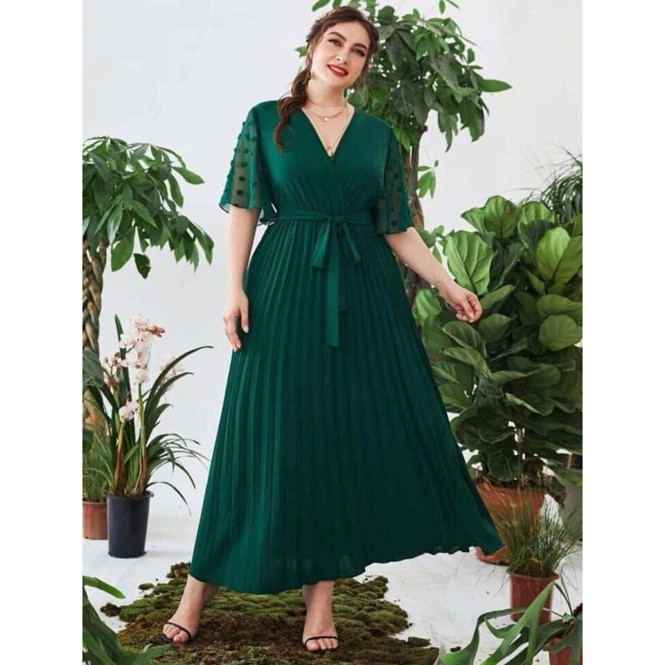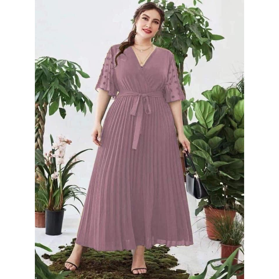 WLS elegant plus size pleated plain maxi dress