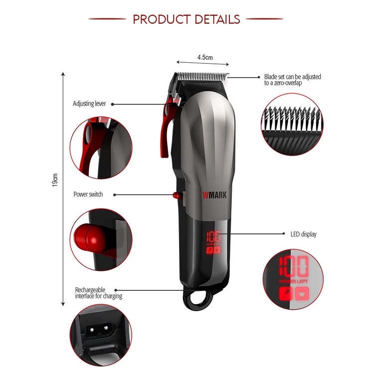 WMARK NG-115 Hair Clipper Grooming Kit Electric Hair Trimmer Clipper Shaver Set LCD Digital Display Hair Clippers for Men