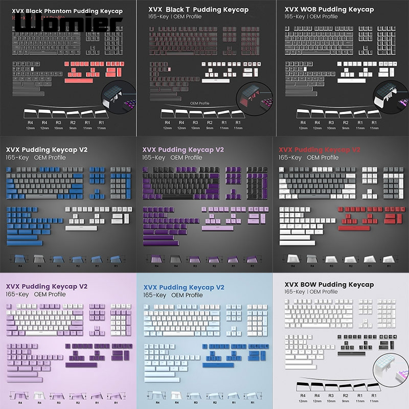 WOMIER 165 Keys Pudding Keycaps Full Set PTB Keycap OEM Profile Double Shot Keycap for 100%, 75%, 65%, 60% Mechanical Keyboard
