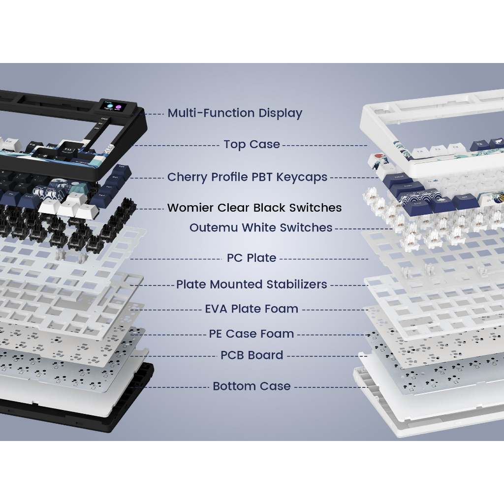 WOMIER 75% Wired Mechanical Keyboard S-K80 Gasket Mounted RGB Keyboard with OLED Display Hot Swap Gaming Keyboard