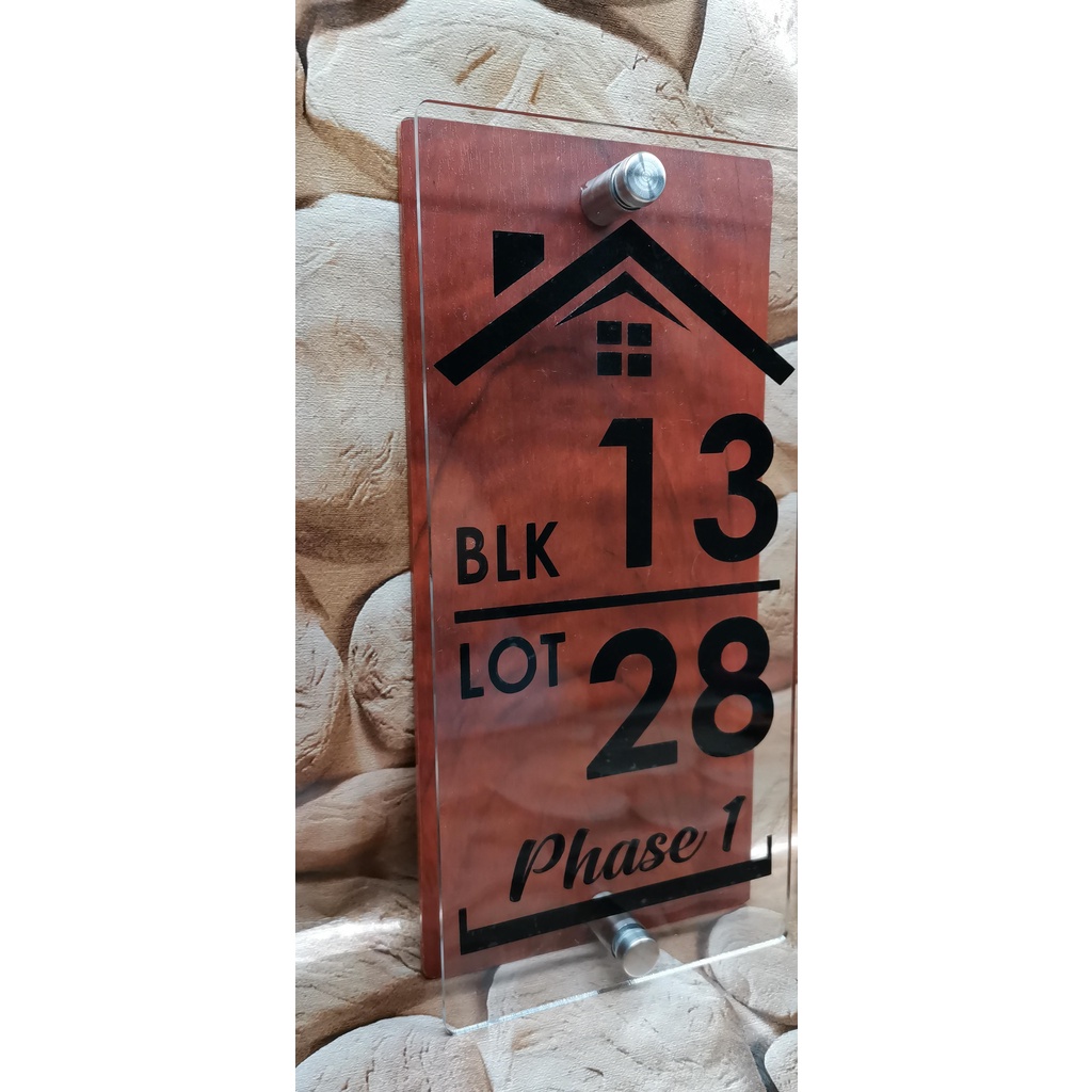 WOOD Design ACRYLIC SIGNAGE ADDRESS HOUSE NUMBER / PERSONALIZED 9x4.25 inches DOUBLE PLATE