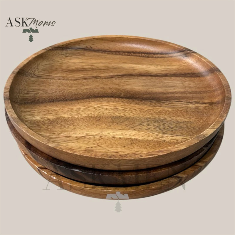 WOODEN PLATE (8 inches) | ROUND/CIRCLE APPETIZER PLATE, WOODEN TRAY | ACACIA WOOD ASKMOMS