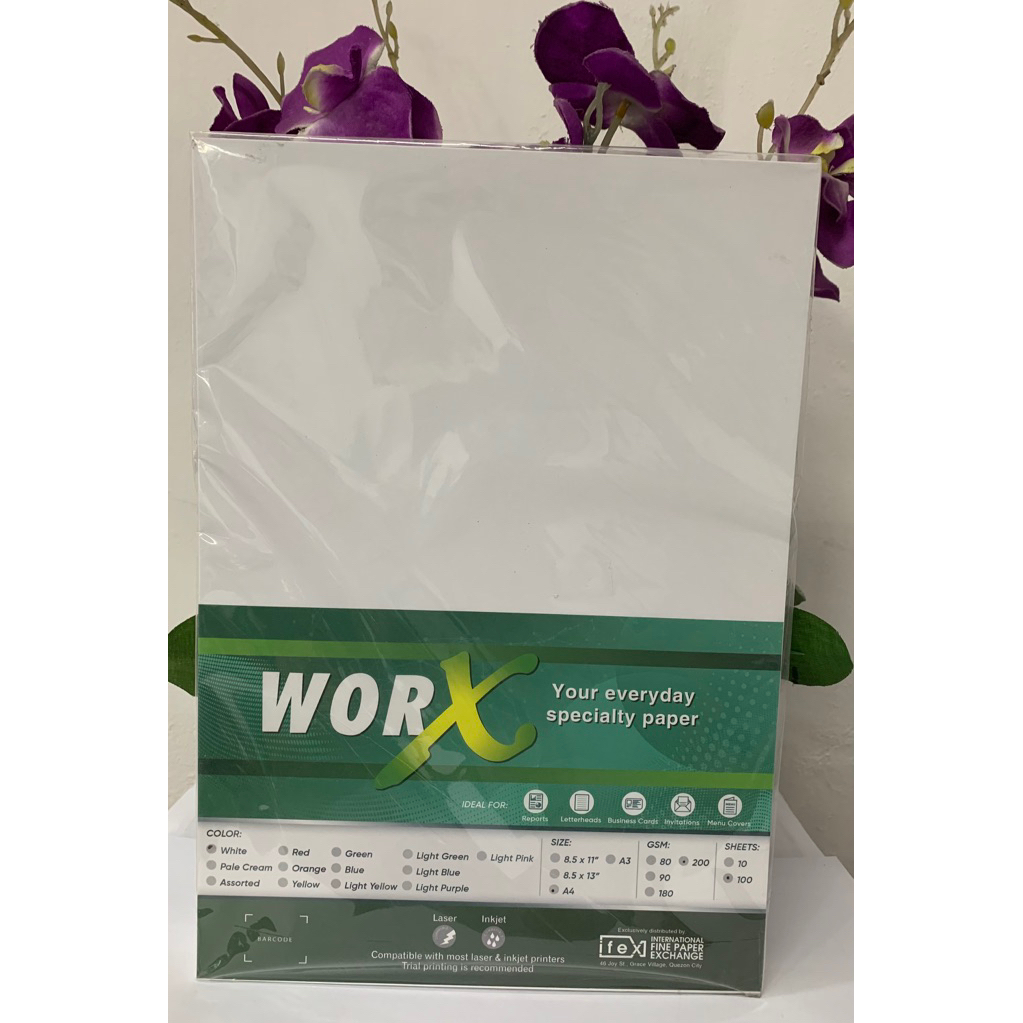 WORX Specialty Paper White 200gsm Long A4 Short 100pcs | School & Office Supplies