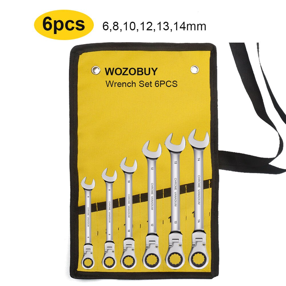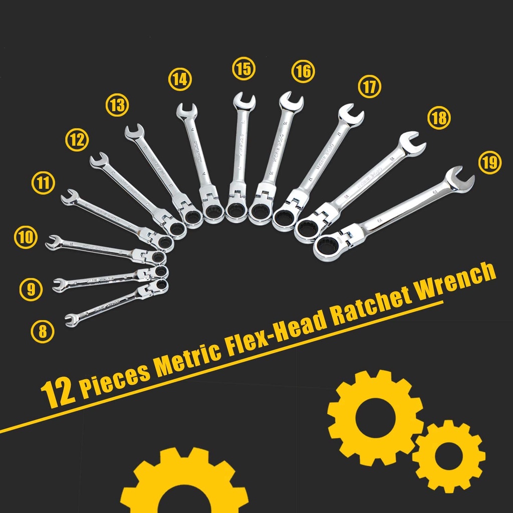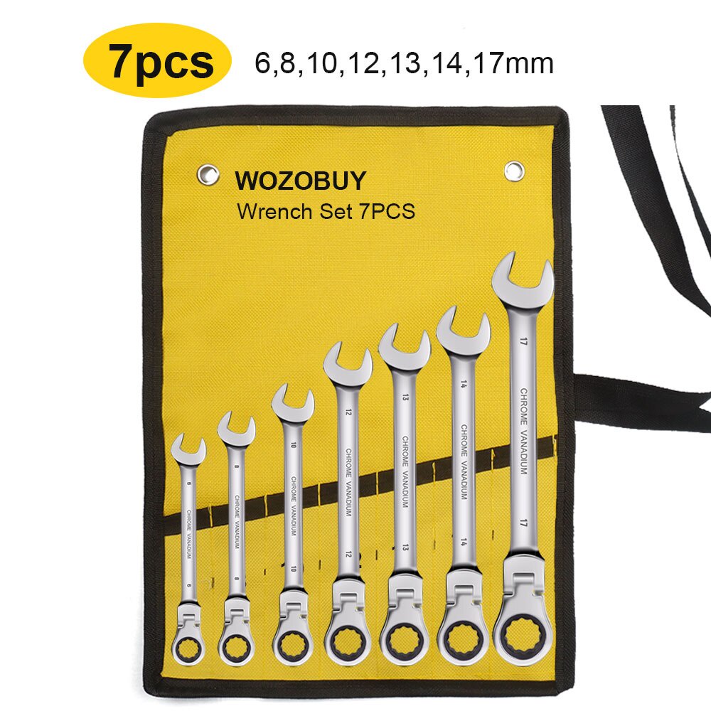 WOZOBUY Flex Head Ratcheting Wrench Set- Metric Ratchet Combination Wrenches CrV Gear Spanner Set Car Key Wrench Repair Tool Set