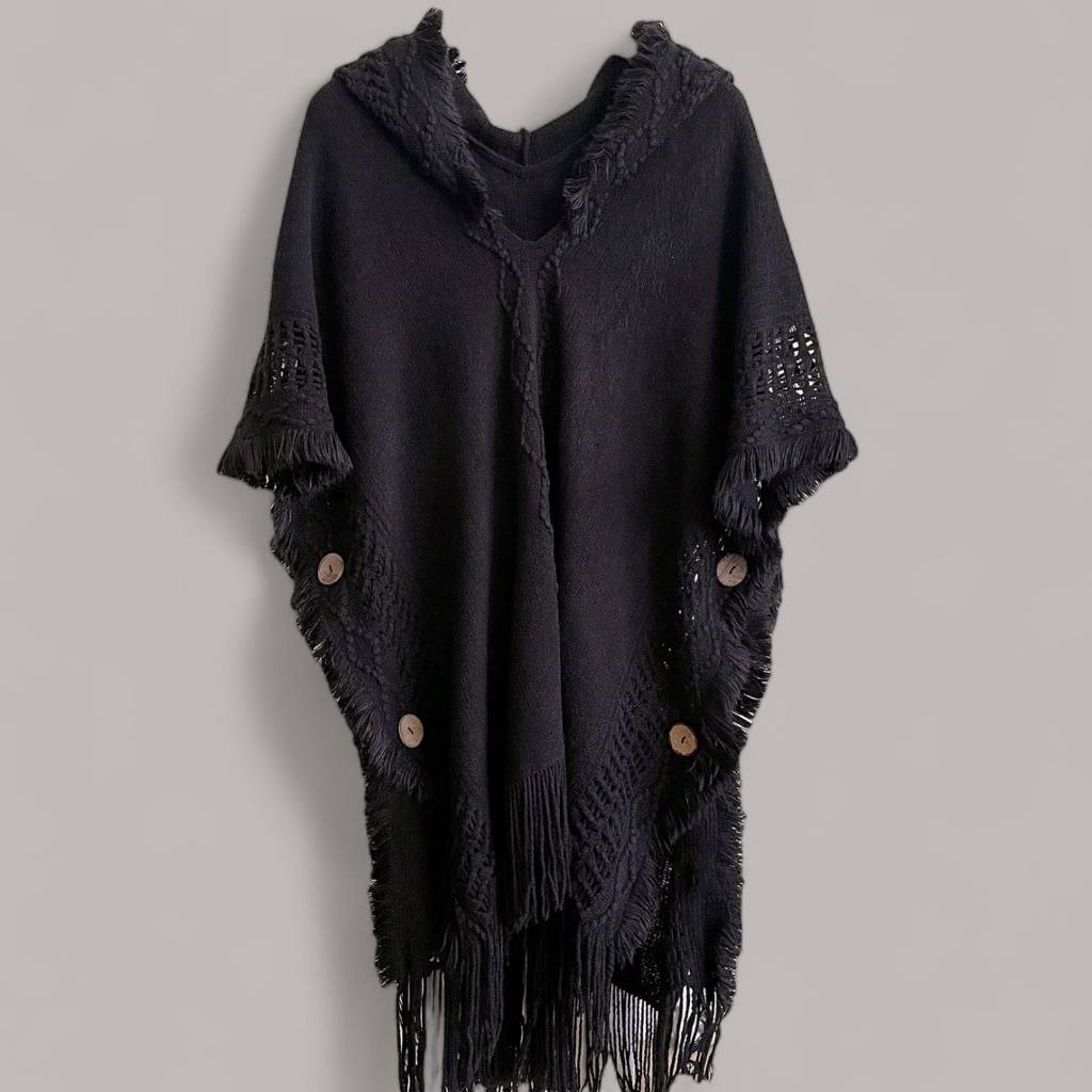 WRAP Hooded Loom Knit Cloak with Fringe