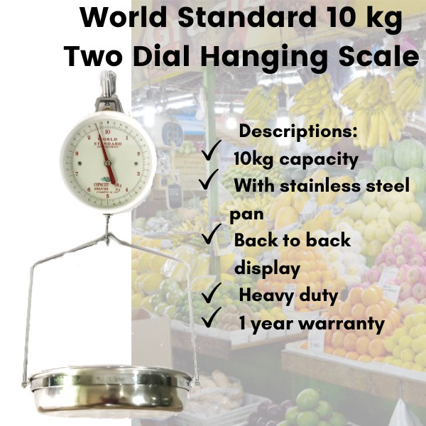 WS-TDSHS-NTB-10 World Standard 10 kg Two Dial Hanging Kilohan Scale.