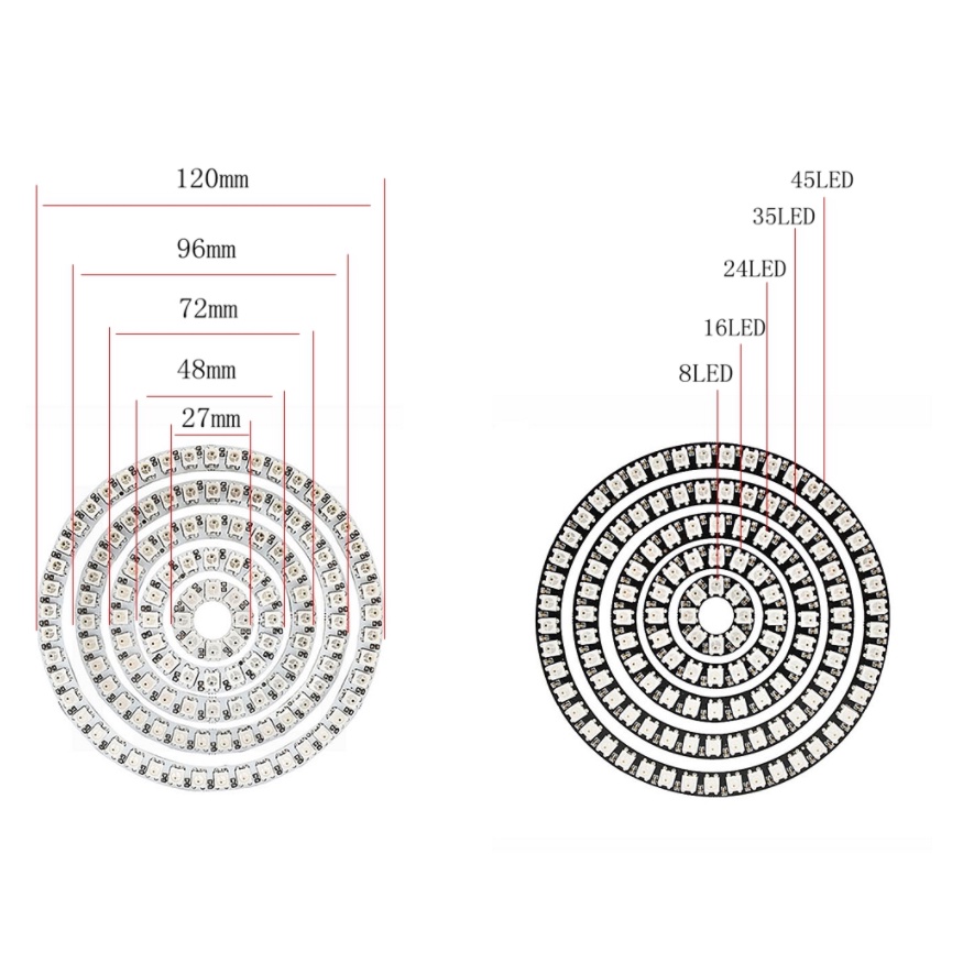 WS2812B 8/16/24/35/45 Leds Pixel Ring Addressable Led Modules WS2812 IC 5050RGB Led Digital Panel Light Matrix Flexible Screen Full Color Round Led Circle Individually Addressable Pixels DC5V