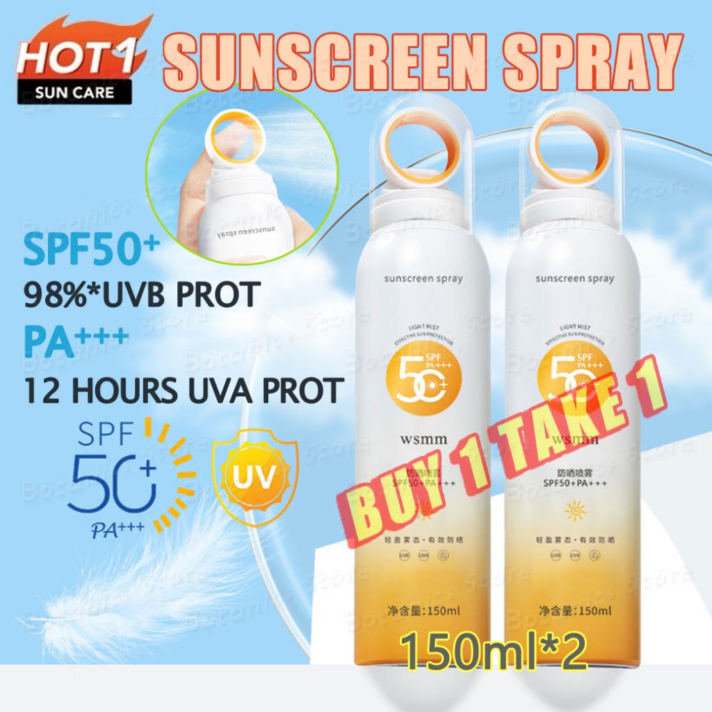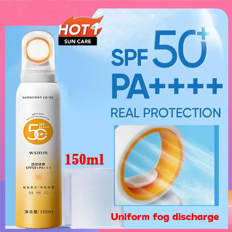 WSMM Sunscreen Mist Spray SPF50+ PA+++ Moisturizing Sunblock Spray Anti UV For Face And Body 150ml