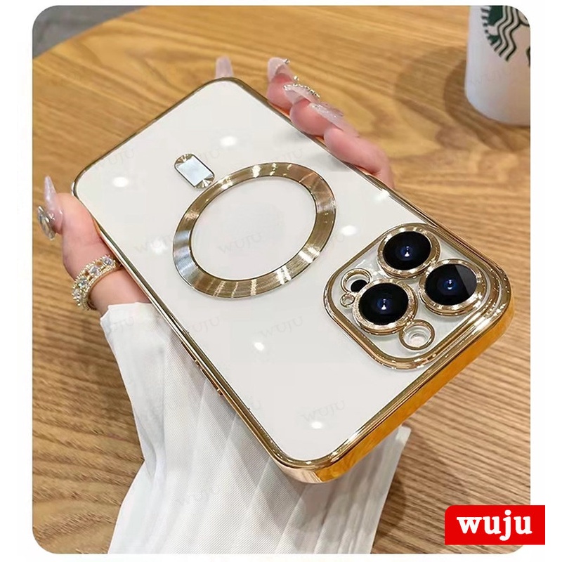 WUJU Plating Luxury Wireless Charging Transparent Magnetic Phone Case Compatible For iPhone 17 16 15 14 13 12 11 Pro Max Plus Air Soft Shockproof Case Cover Magnetic Clear
