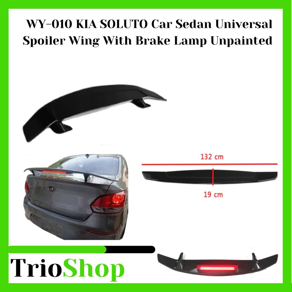 WY-010 KIA SOLUTO Car Sedan Universal Spoiler Wing With Brake Lamp Unpainted Matte Black Primer