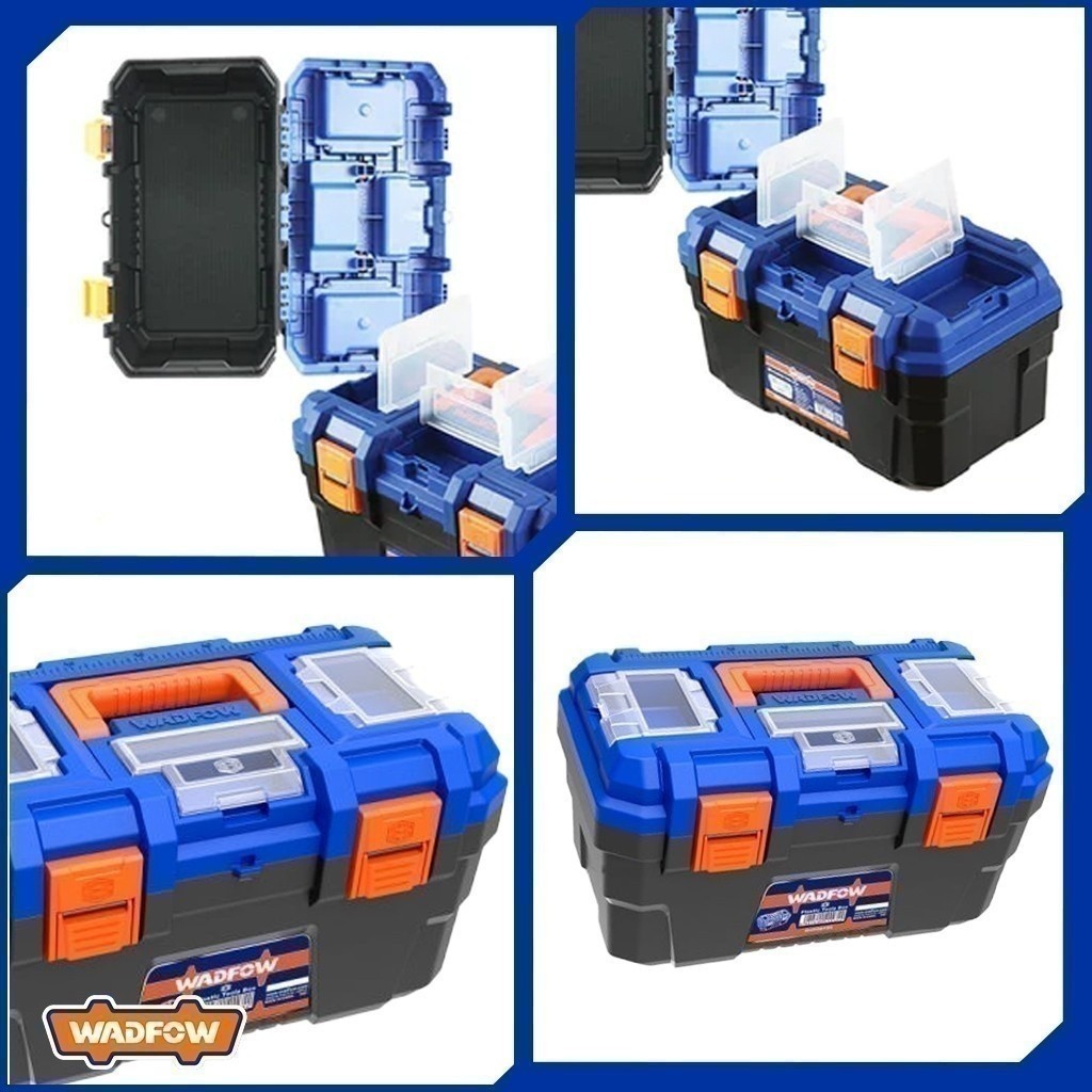Wadfow 16" Plastic Tool Box Organizer Case with Removable Tray Heavy Duty WTB1316 (WHT)