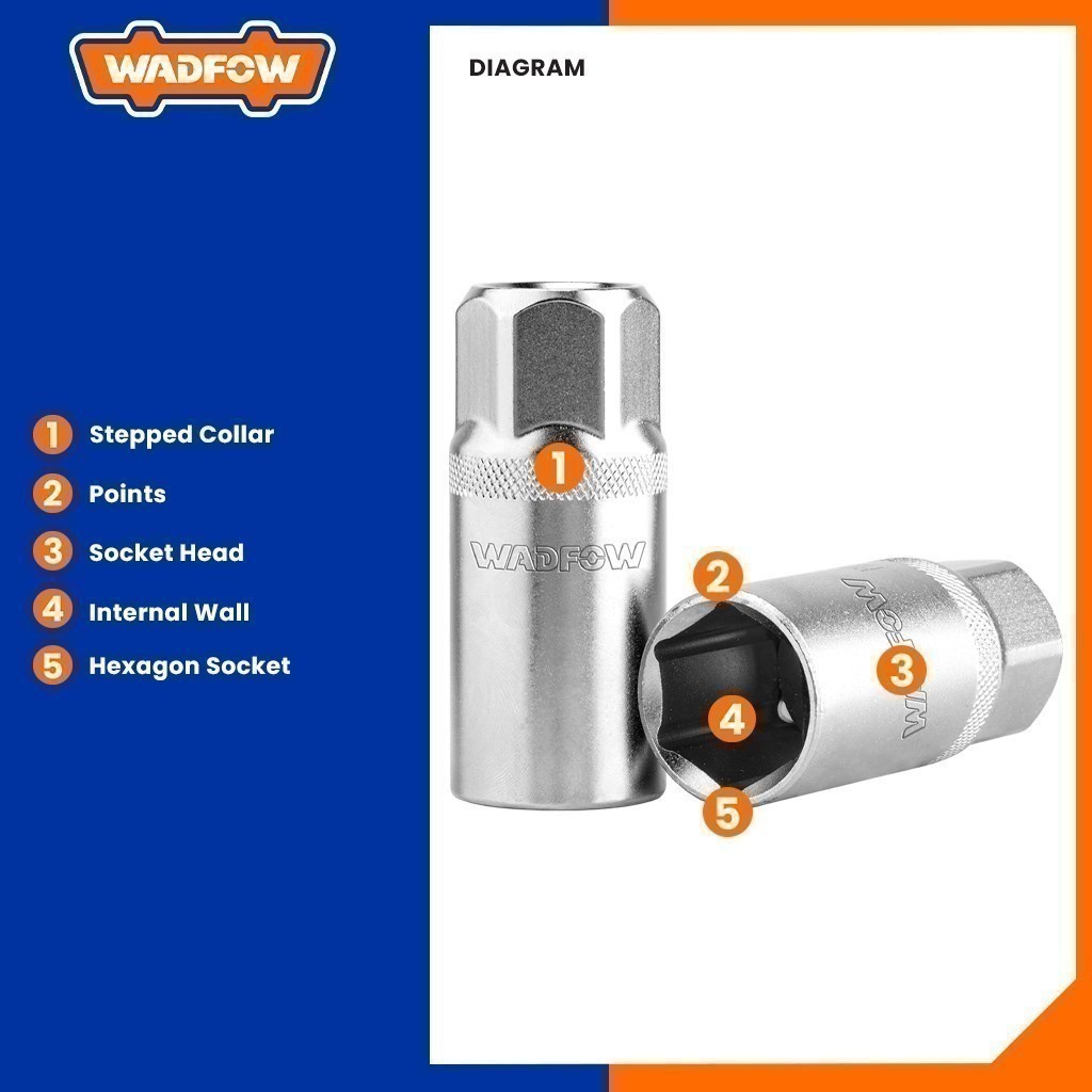 Wadfow Spark Plug Socket Tool 16mm-21mm 1/2 Inch Chromed Plated Heat Treatment Quality (WHT)