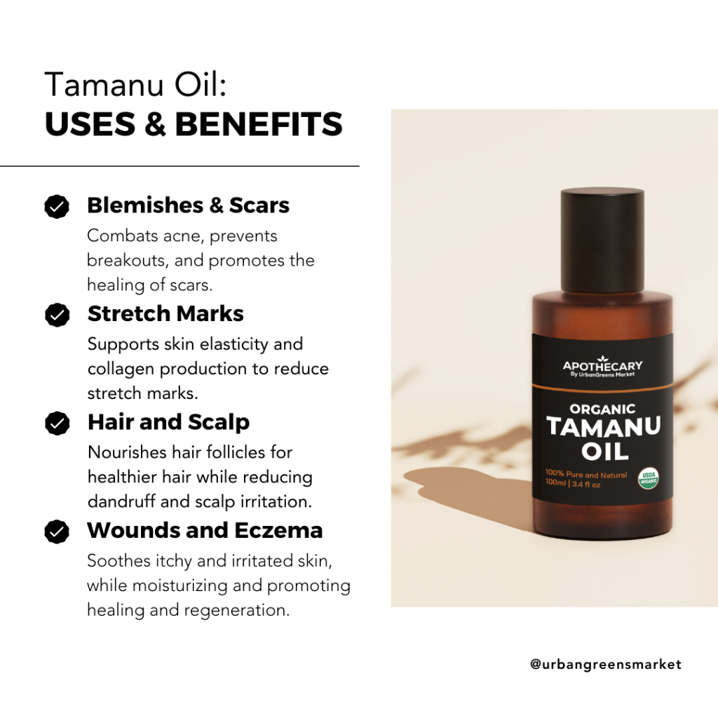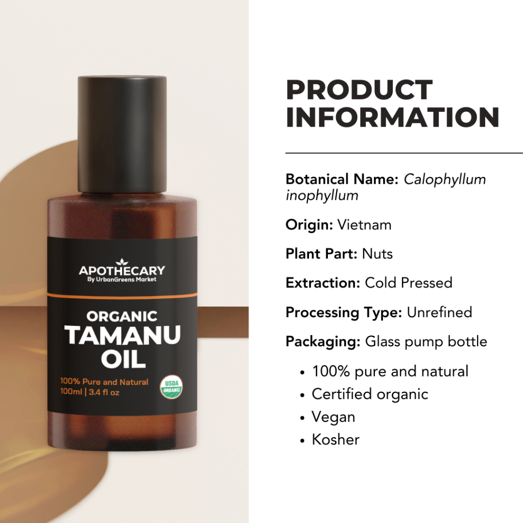 Organic Tamanu Oil, 100% Pure and Natural Carrier Oil, Premium Quality