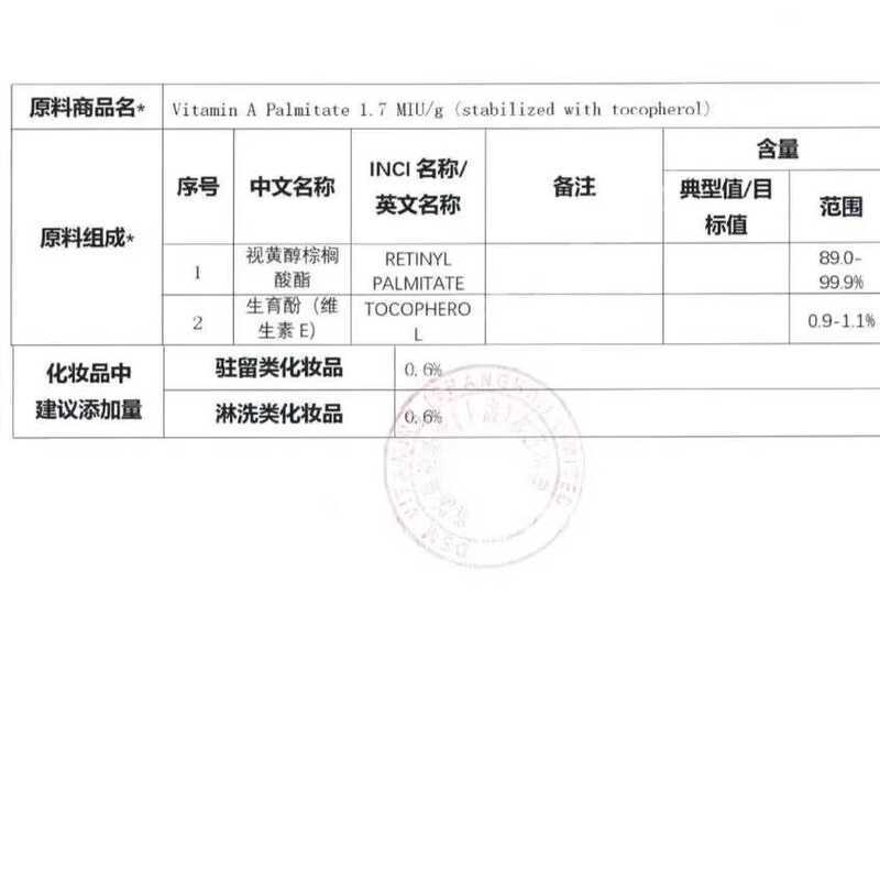 Oil-soluble Retinol 89-99% Content Retinyl Palmitate Efficacy Raw Material Skin Vitamin A Alcohol