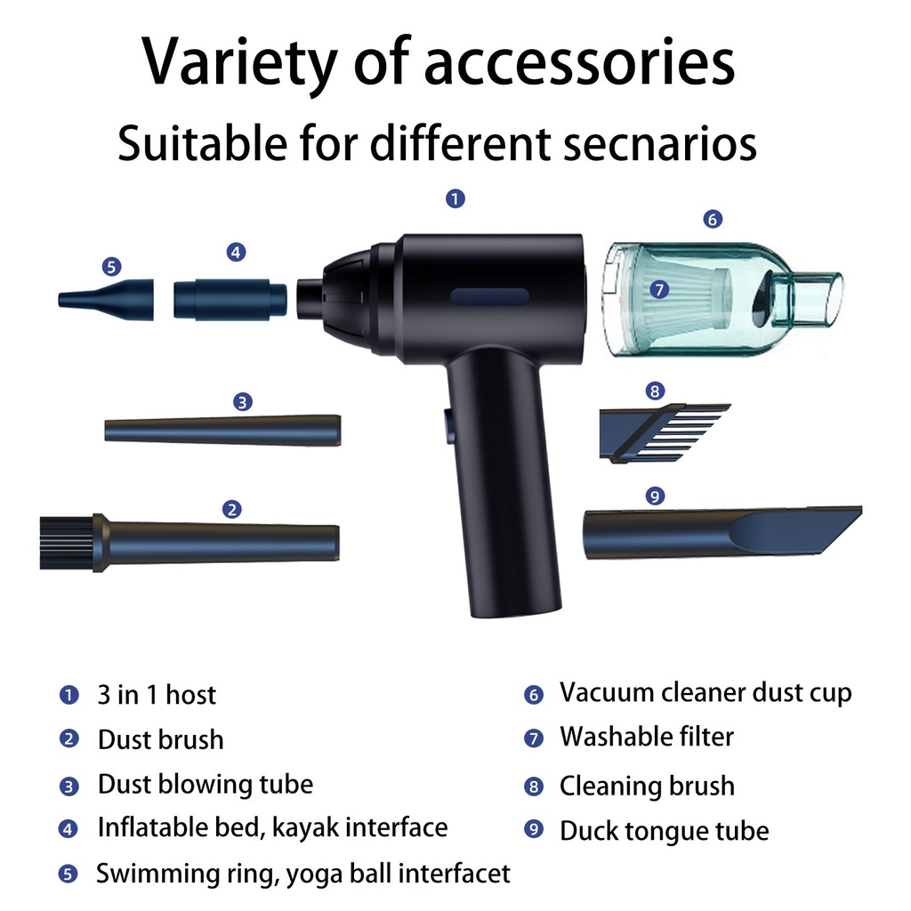 CENZIMO 110000 RPM 3 in 1 Vacuum Cleaner Cordless Electric High Pressure Air Duster mini Pump Computer Cleaner Blower Keyboard Laptop Deep Cleaning Tool Rechargeable
