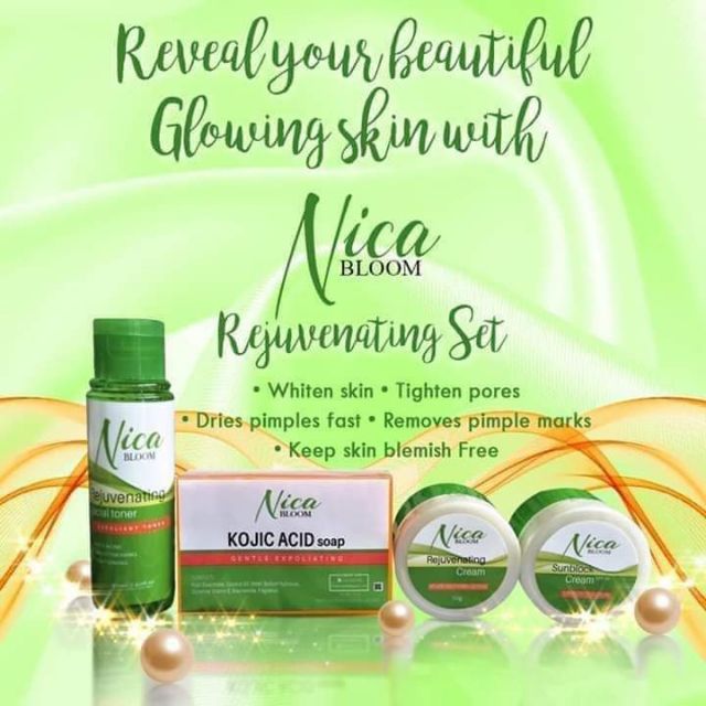 Nica Bloom Rejuv Set, Toner, Rejuv Cream, Sunblock, Soap