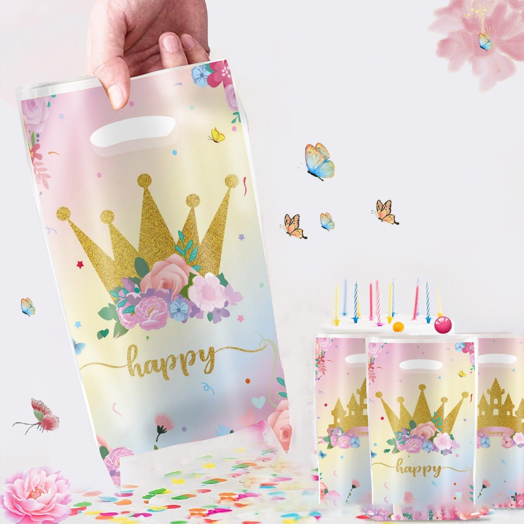 10-40pcs Hot Princess Castle Plastic Candy Gift bag Pink Birthday Party Decorations Kids Wedding Supplies Baby Shower Cookie Biscuit loot bag