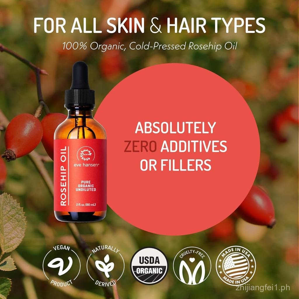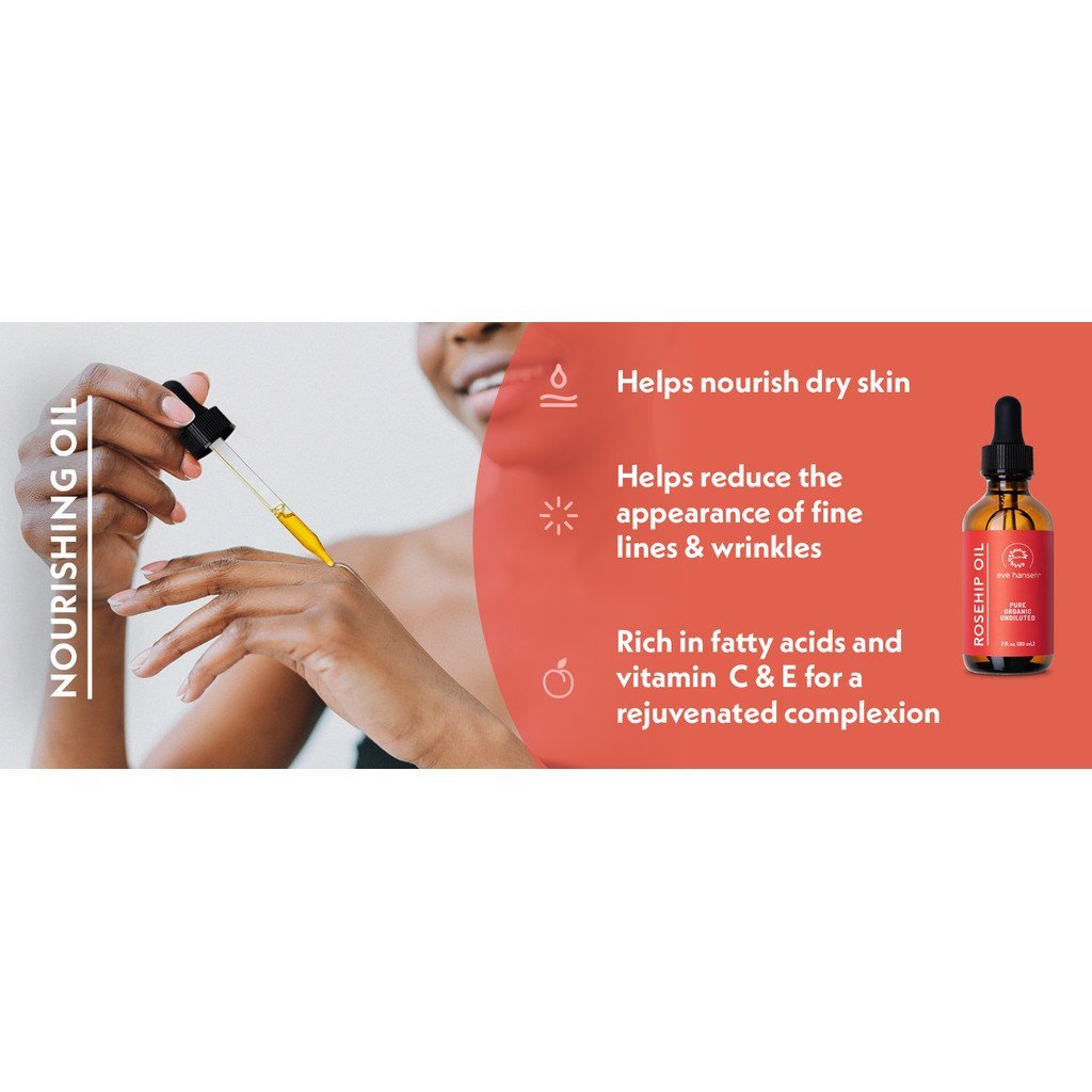 Eve Hansen Rosehip Oil for Face & Skin – Organic Cold-Pressed Rosehip Seed Oil | Hydrating & Fast-Absorbing Moisturizer | 2oz
