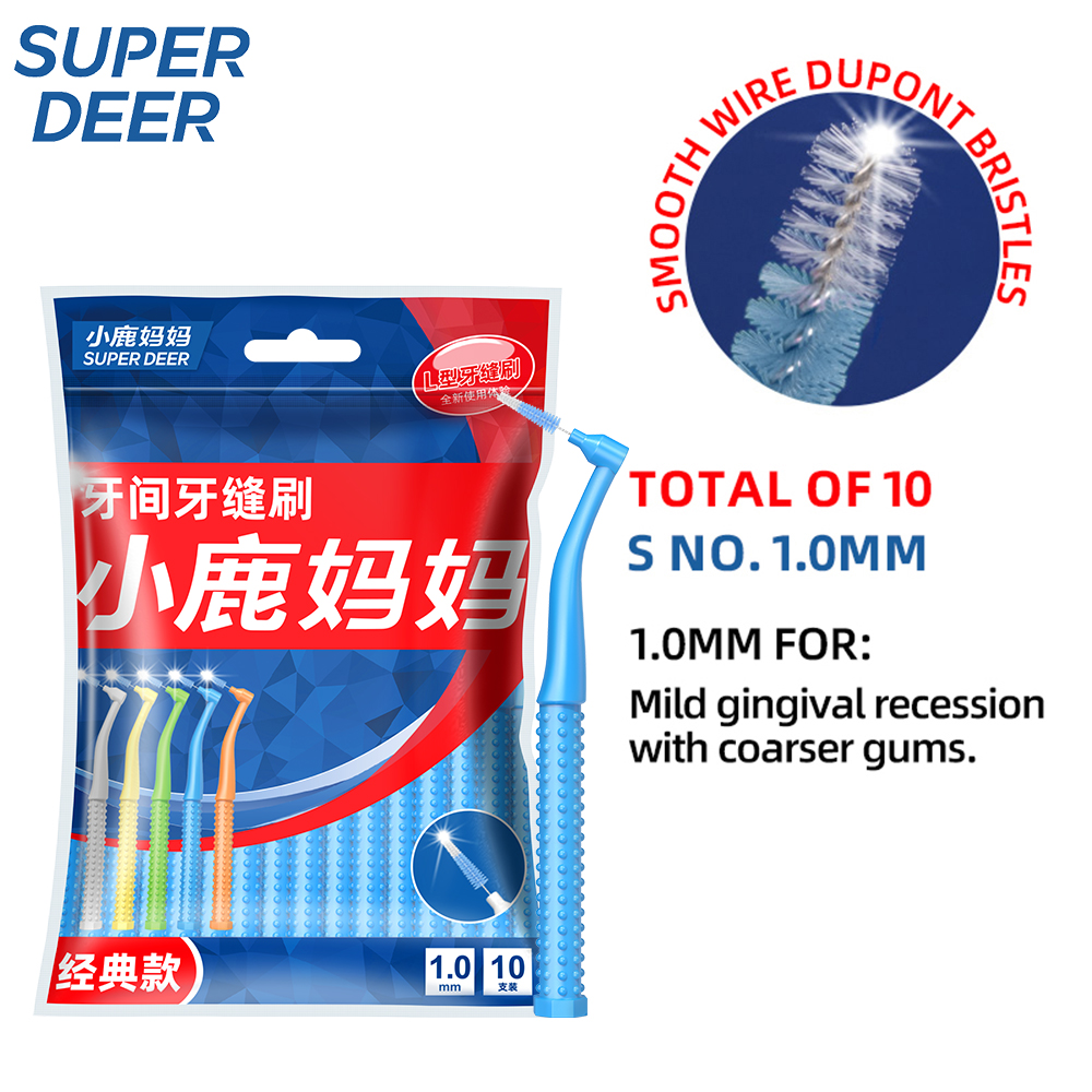 Fawnmun 10Pcs/Bag L-Shape Interdental Brush For Dental Orthodontic Push-Pull Cleaning Brush Between Teeth Oral Hygiene Care