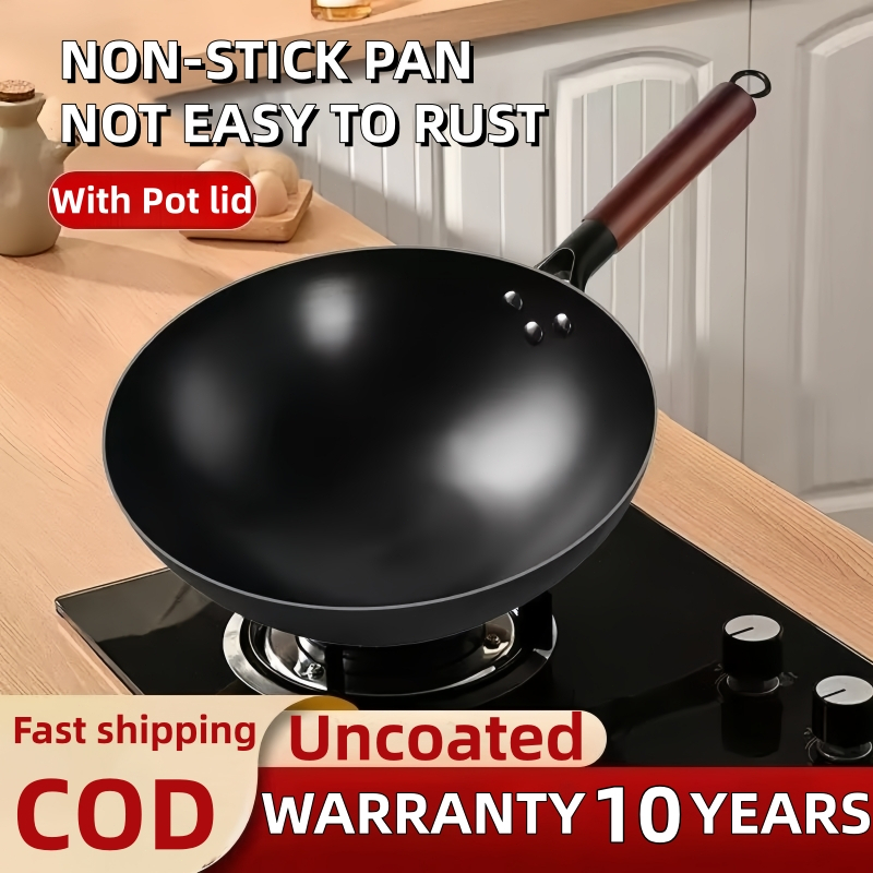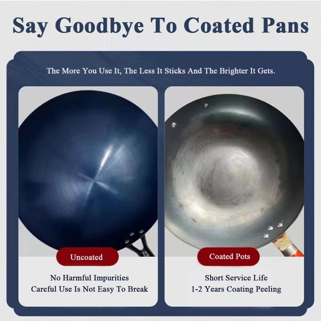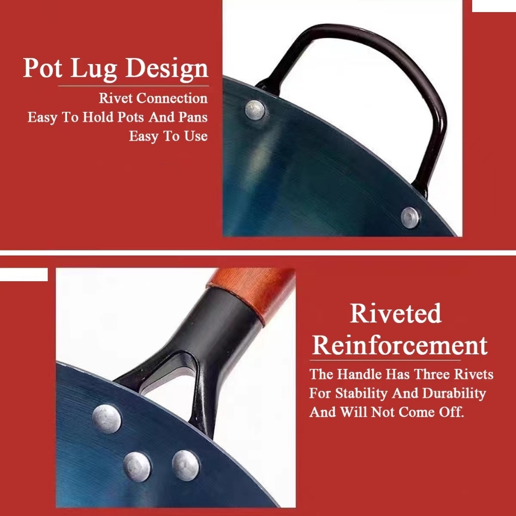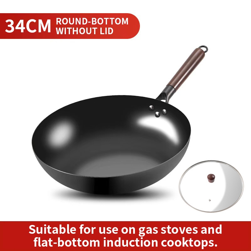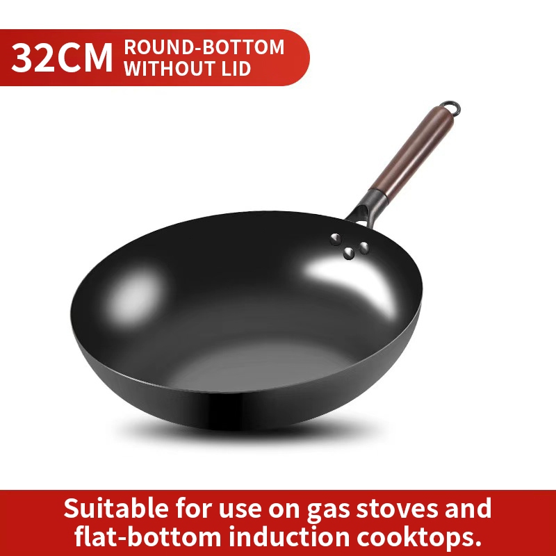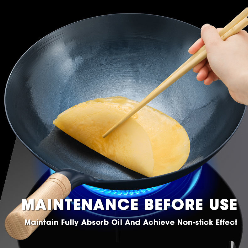 Traditional Chinese Handmade Wok Non-Stick Frying Pan Wok Bang Lightweight, Rust Resistant, Iron Pot