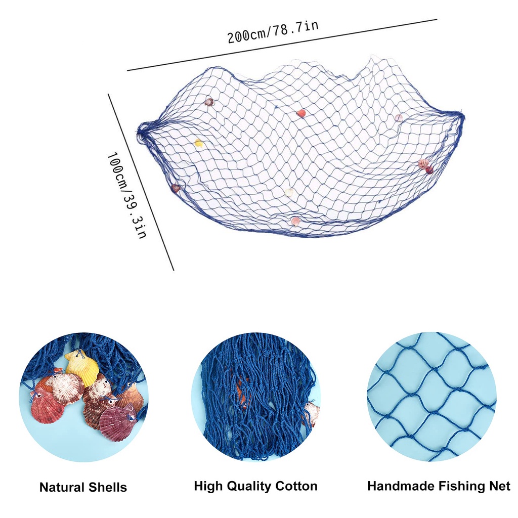 Wall Hanging Fishing Net Decoration Mediterranean Sea Shell Style Home Wall Stickers Decor 100x200CM