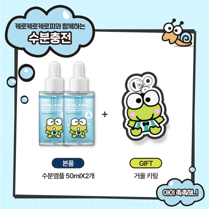 [KEROPPI x BEYOND] New Angel Aqua Deep Moisture Calming Ampoule 50ml+50ml+KEROPPI Mirror Keyring