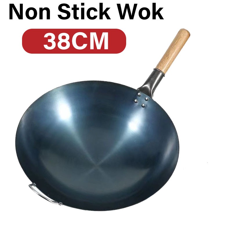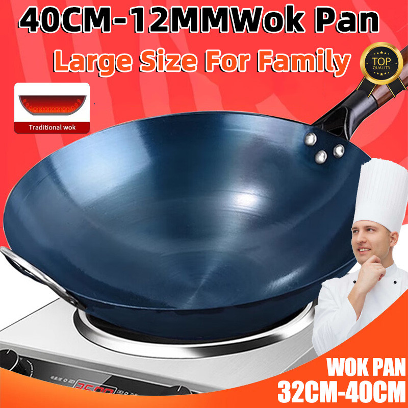 MIKE0 Kawali Wok Non Stick Black High Quality Carbon Heavy Duty Carbon Steel Deep Frying Pan Wok Original Iron Wok 32CM/34CM/36CM/38CM/40CM