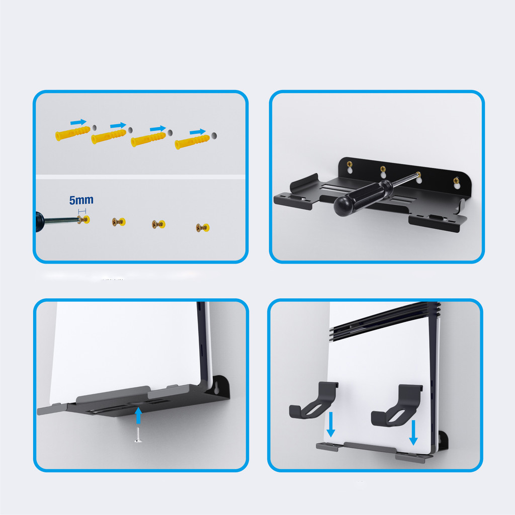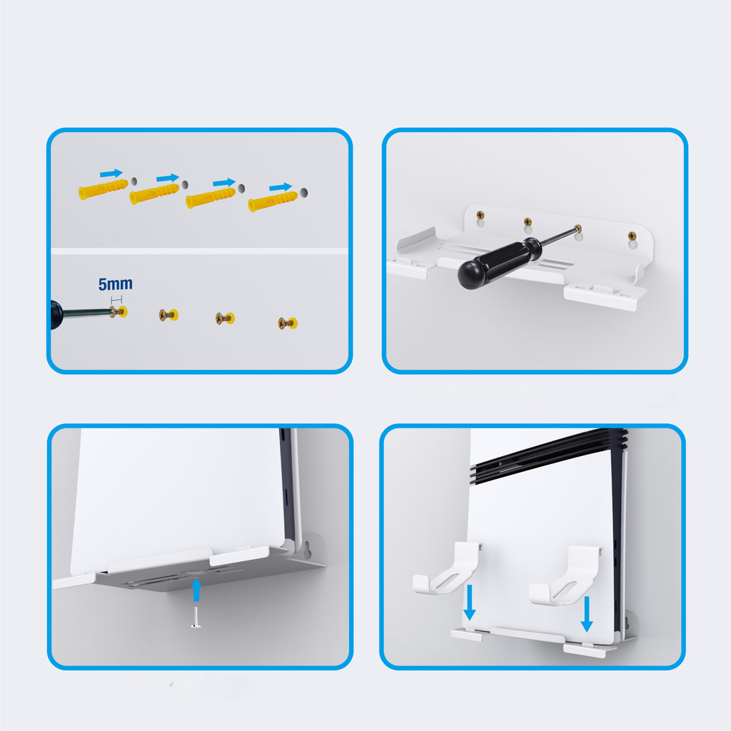 Wall Mount Bracket Base with Controller Holder Wall Hanging Stand for PS5 Pro/ps5 Slim Digital Edition and Disc Edition