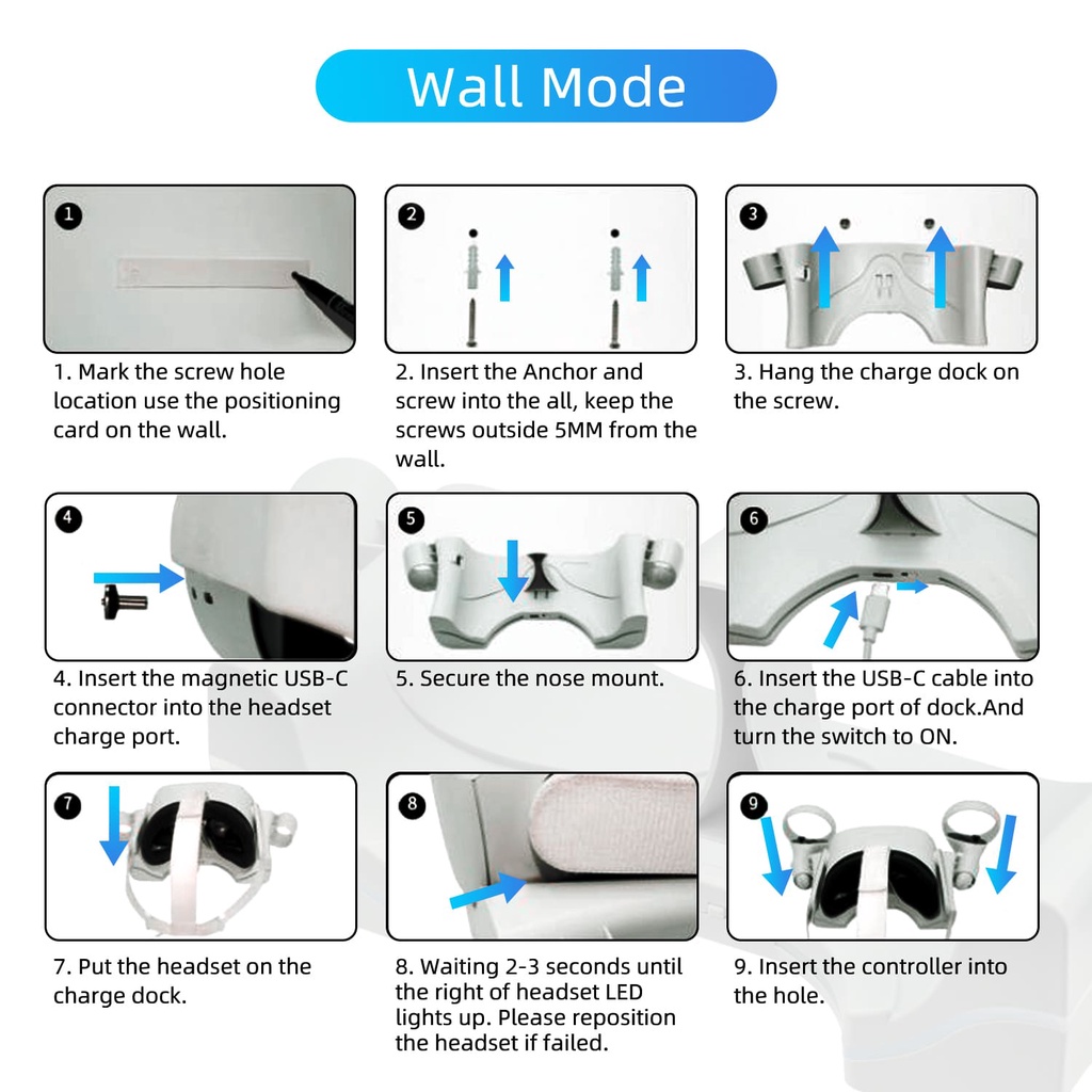 Wall Mount Charging Dock for Oculus Quest 2 Helmet - White