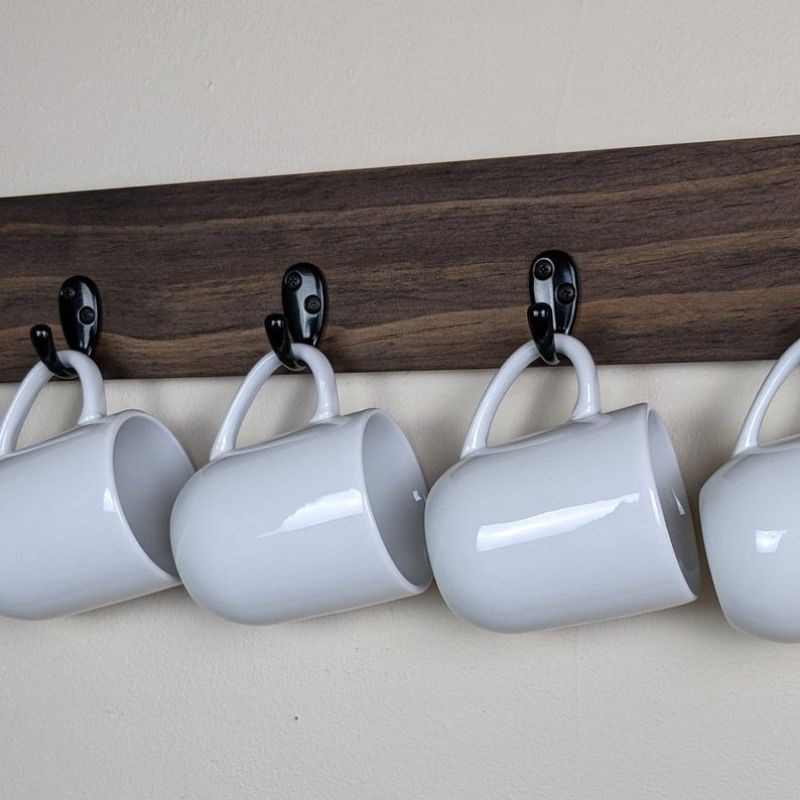Wall Mounted Coffee Mug Hanger, coffee mug Holder, Mug Holder (with free extra hook)