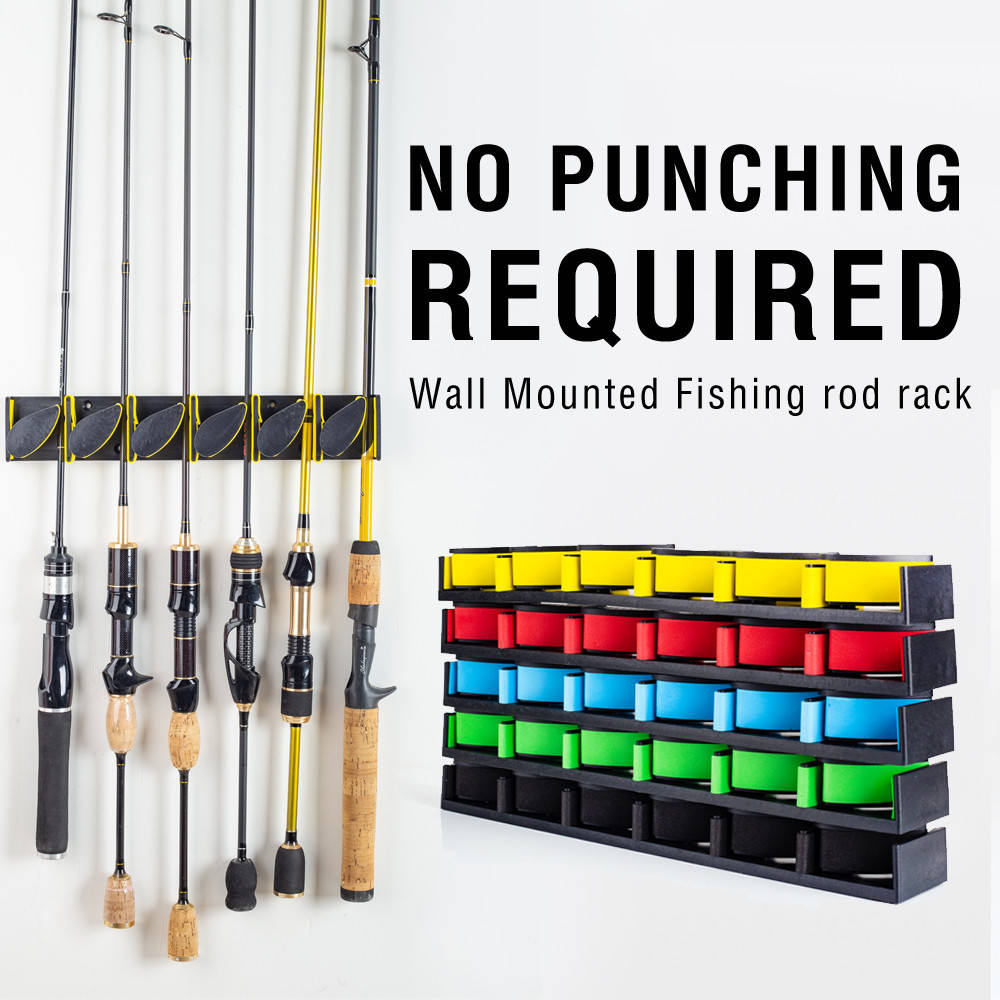 Wall-Mounted Fishing Rod Holders Holds Up to 6 Rods Vertical Fishing Rod Display Storage Rack.