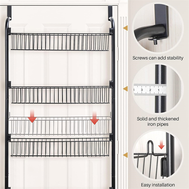 Wall Mounted Hanging Kitchen Storage Racks Heavy-Duty Behind the Door Metal Steel Baskets Spice Rack
