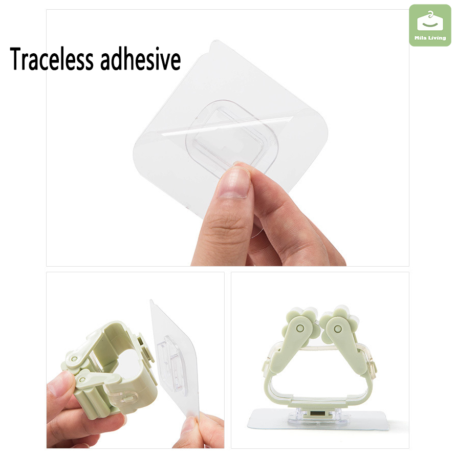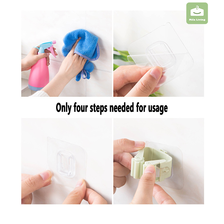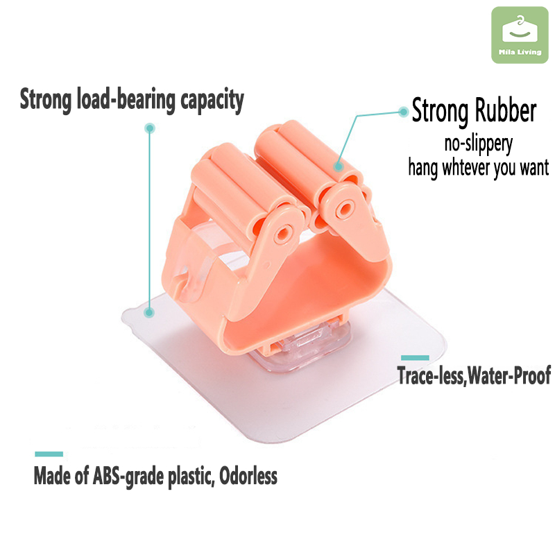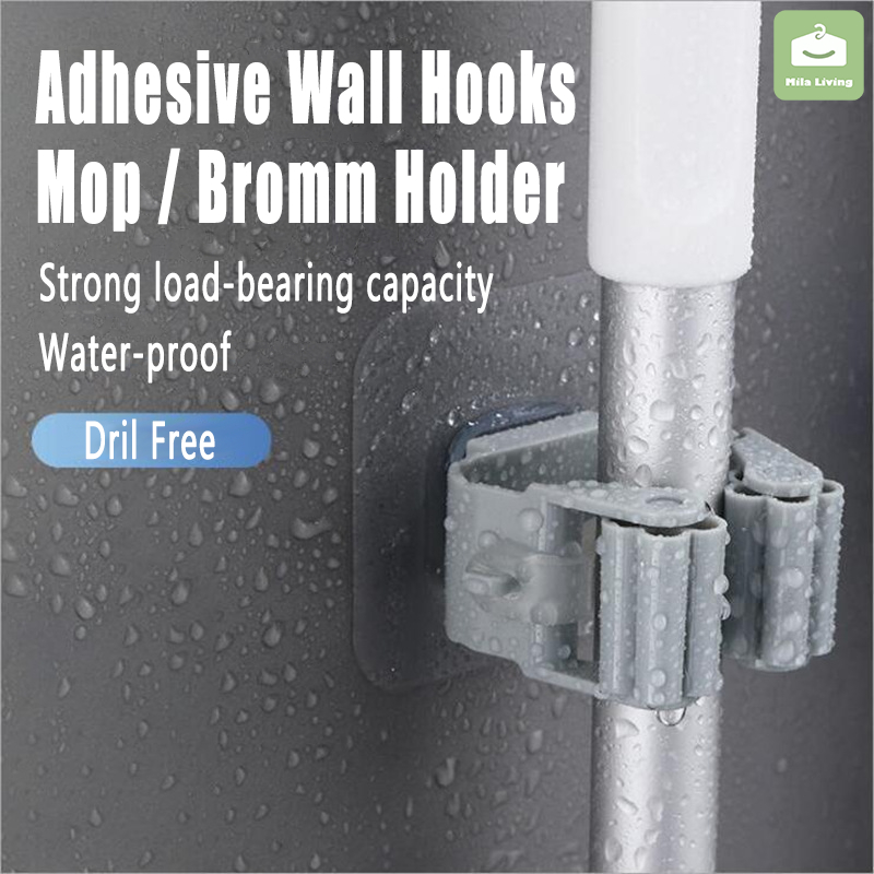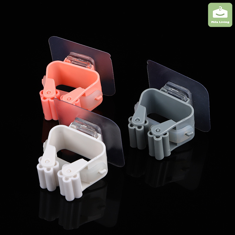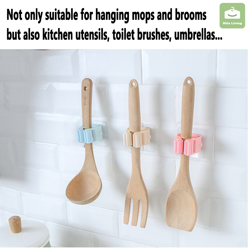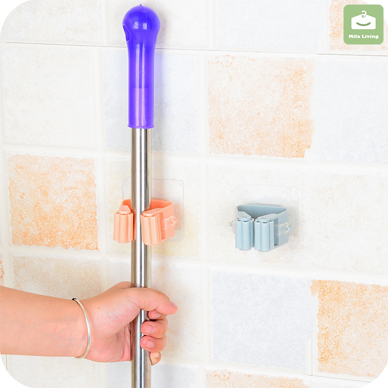 Wall Mounted Hooks Self Adhesive Mop Holder Broom Hanger Spring Clip Rack