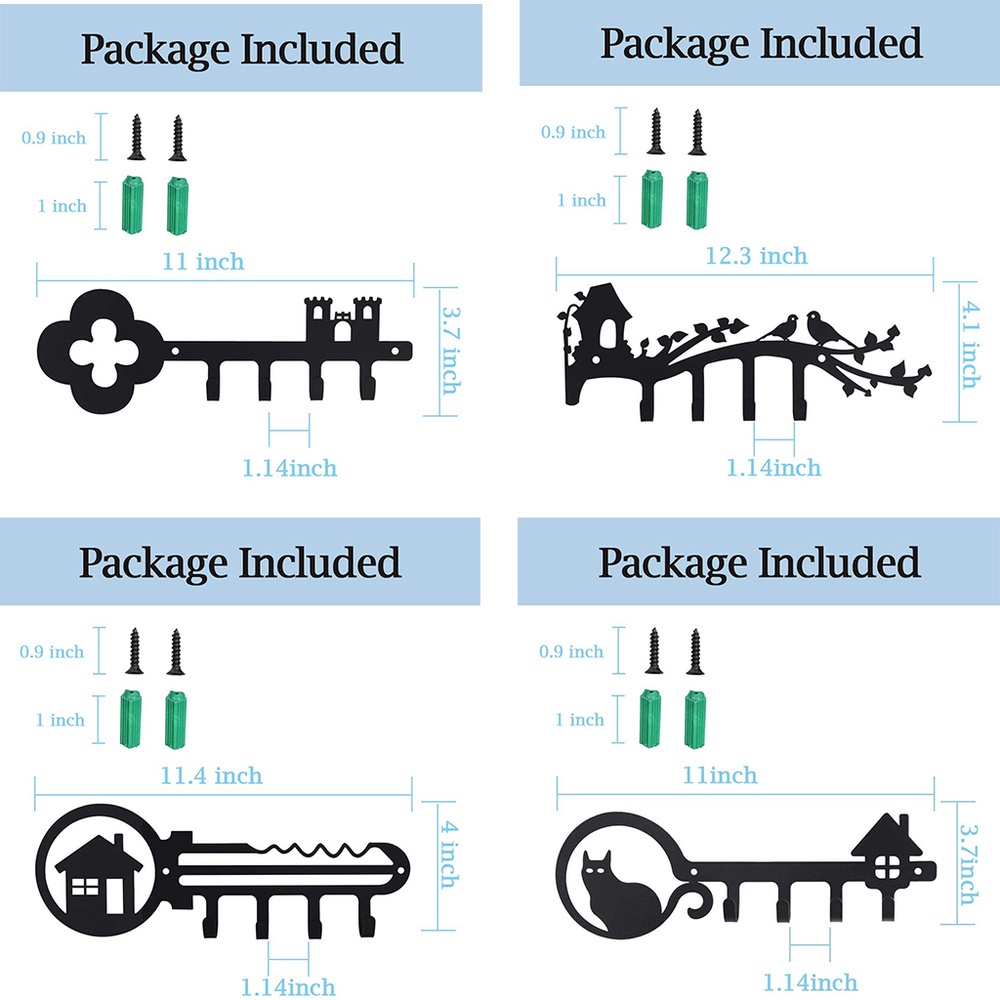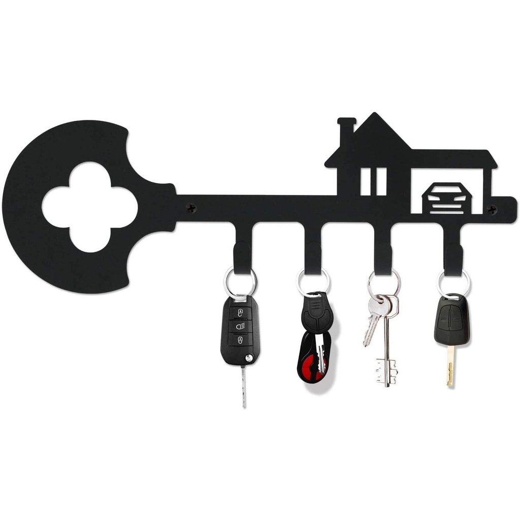 Wall Mounted Iron Key Holder with 4 Key Hooks Organizer for car or house keys Wall mounted Hook up Medals and Awards Coat key hanger Metal pendant wall art home decor Accessories