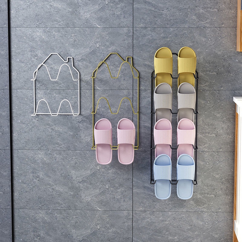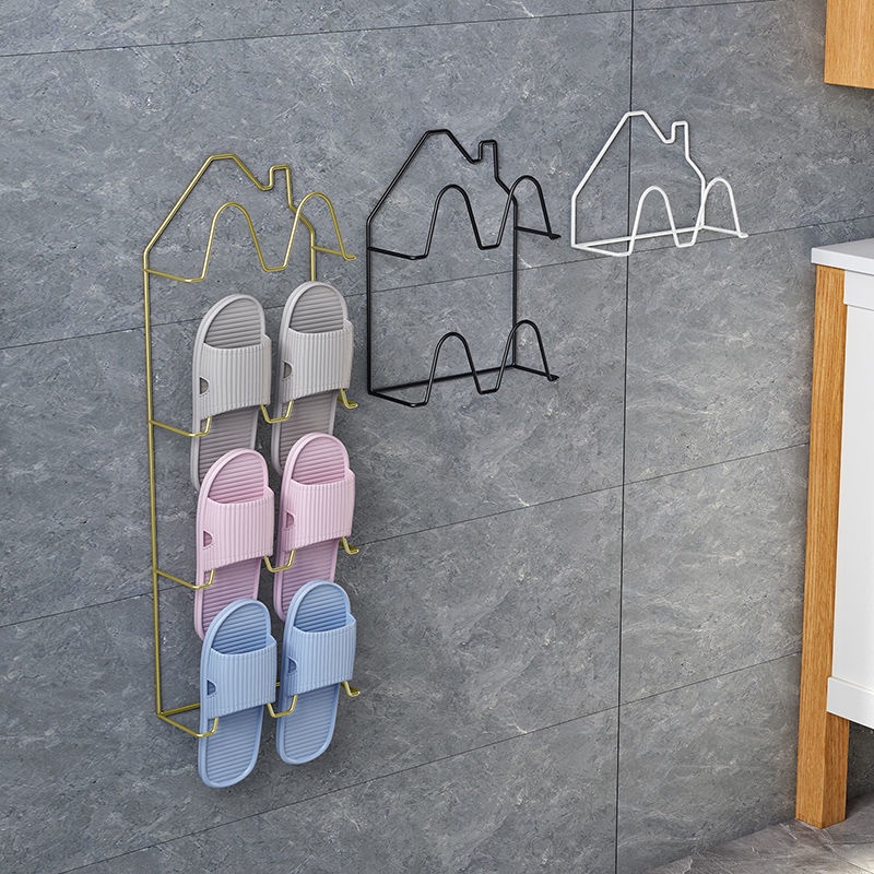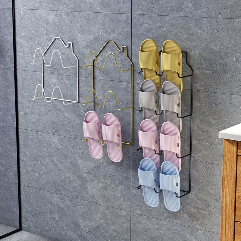 Wall-Mounted Iron Slipper Rack Toilet Bathroom Slipper Rack Slipper Rack No Punching behind the Door Shoes Hanging Slippers Storage Rack