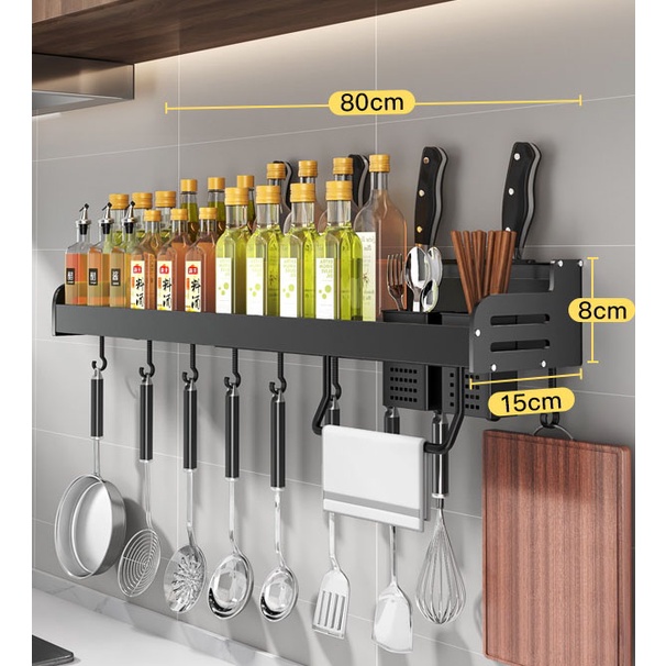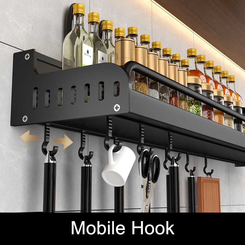 Wall Mounted Kitchen Organizer Condiments Organizer Seasoning Spice Jar Storage Rack with Hooks