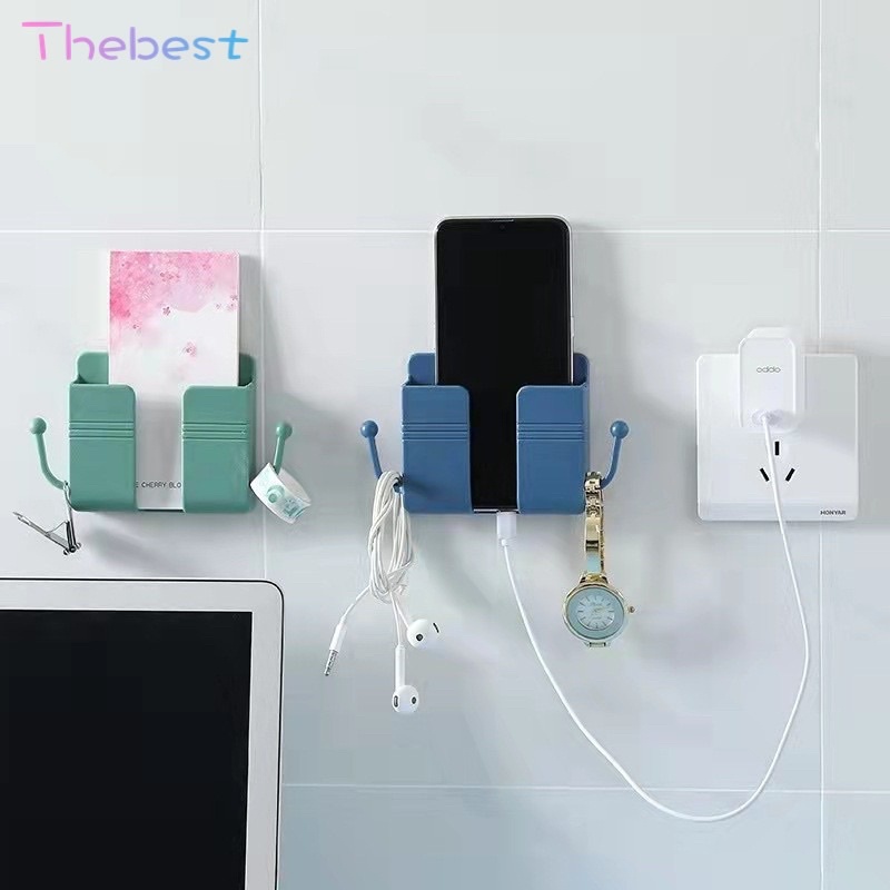 Wall Mounted Phone Holder Organizer Storage Box Remote Control Mounted Mobile Phone Plug Wall stand