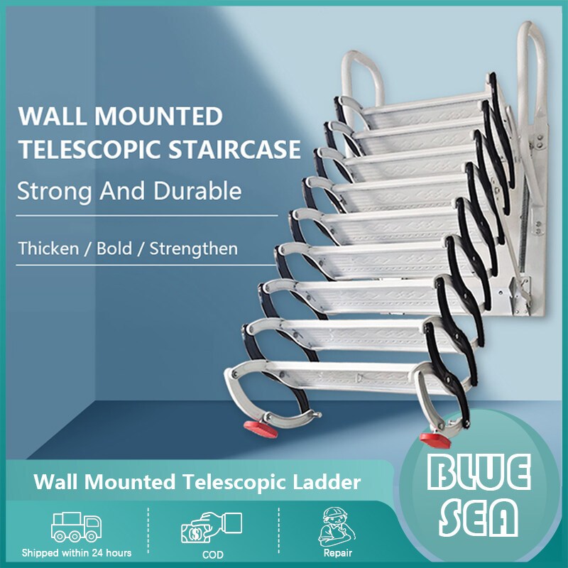 Wall Mounted Telescopic Ladder Lifting Attic Retractable Staircase Stretch Folding Invisible Ladder