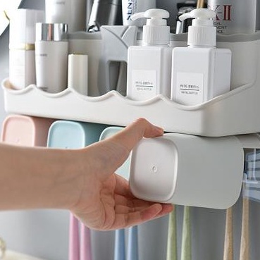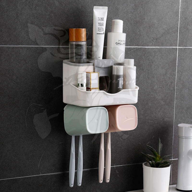 Wall Mounted Toothbrush & Toothpaste Holder Organizer with Cup Holder