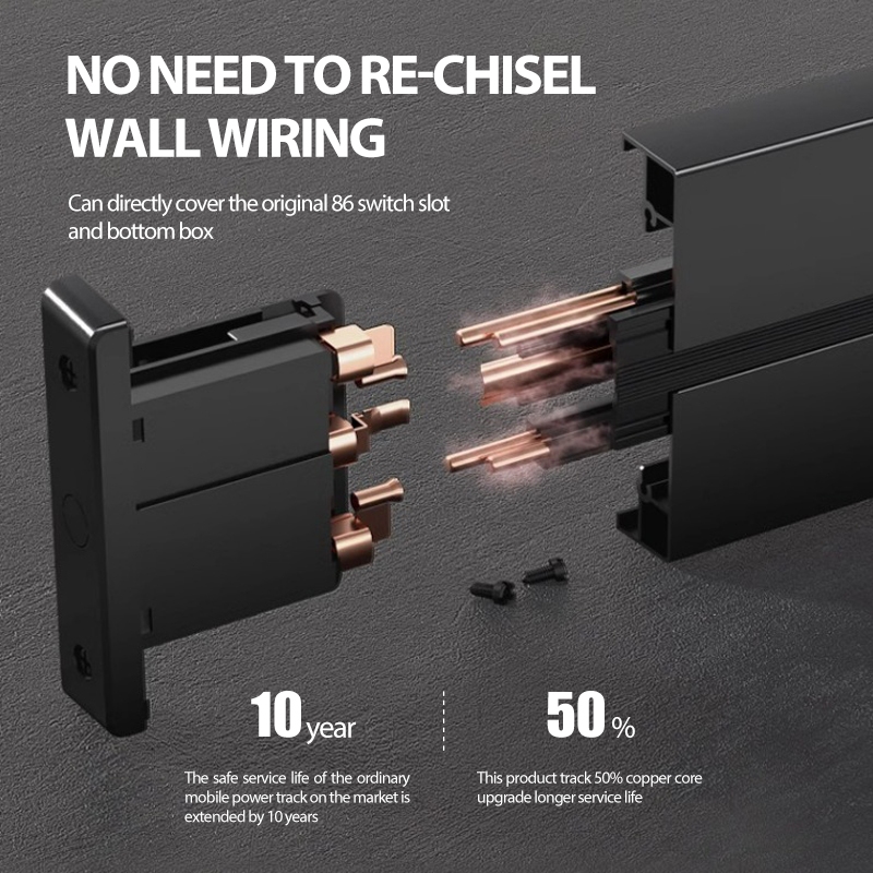 Wall Movable Power Track 8000W Universal Power Adapter Socket with USB+TypeC for Kitchen Living Room
