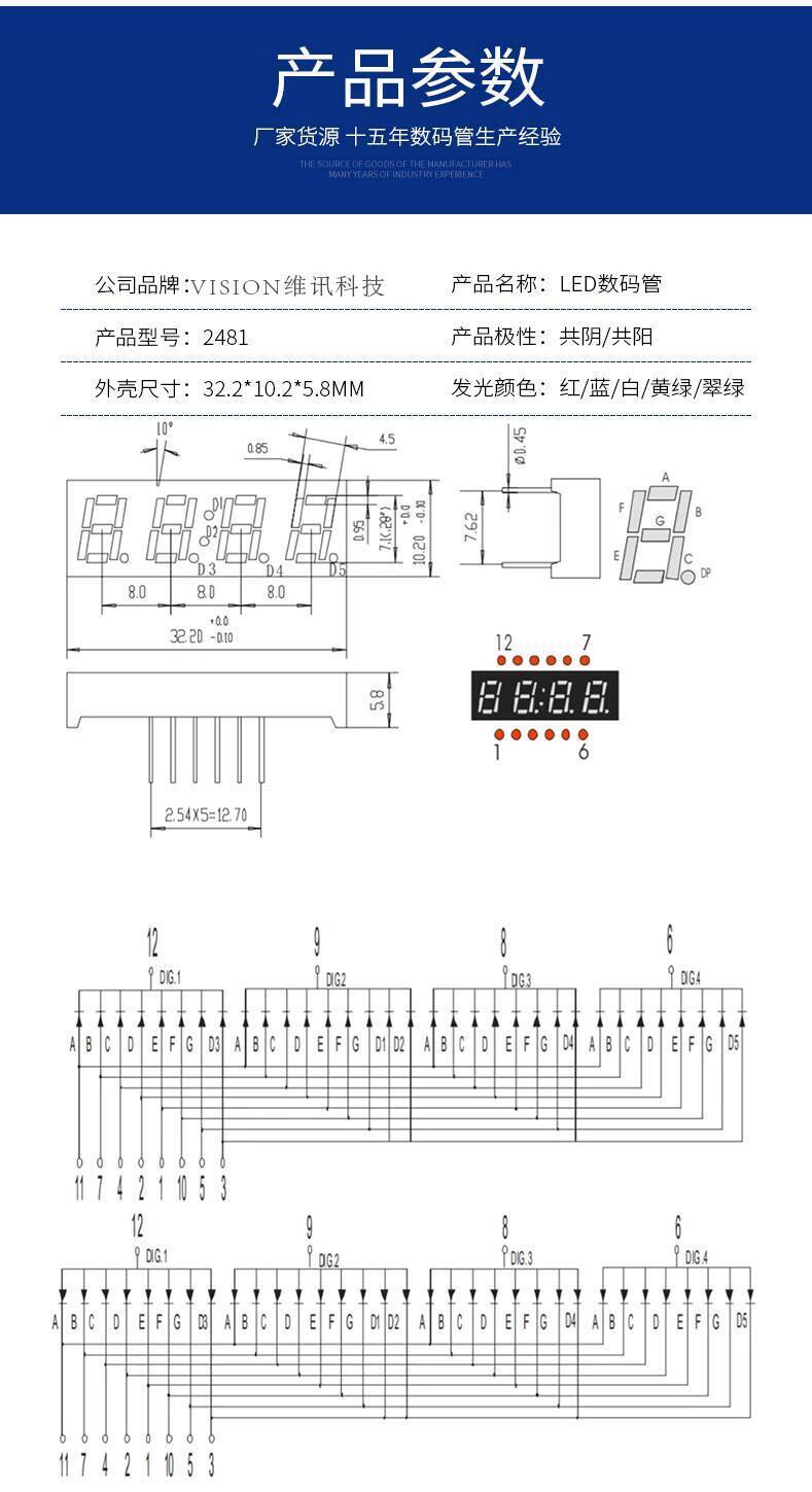 ☑♥ Digital Tube 0.28 Inch 4-Digit Clock Point Common Cathode/Common Anode 2482AS/2841BS AH/BH Red Li