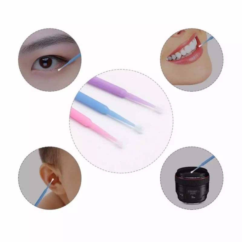 100 Pcs/Pack Disposable Micro Brush Eyelash Cleaner Stick Makeup Brush Removal Cotton Swab Brush