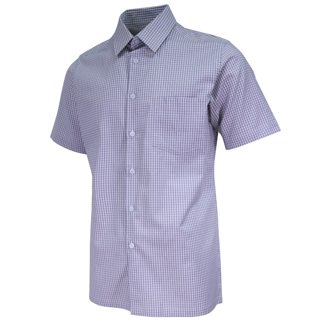 Wall Street Men's Basic Fit Patterned Short Sleeve Shirt w/ Basic Collar (Gray)