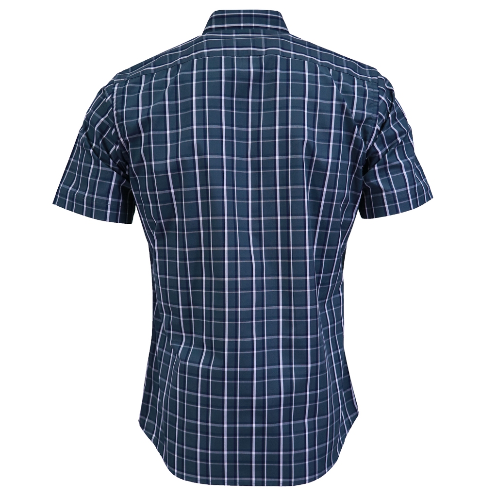 Wall Street Men's Fitted Checkered Short Sleeve Shirt w/ Button-Down Collar (Gray)