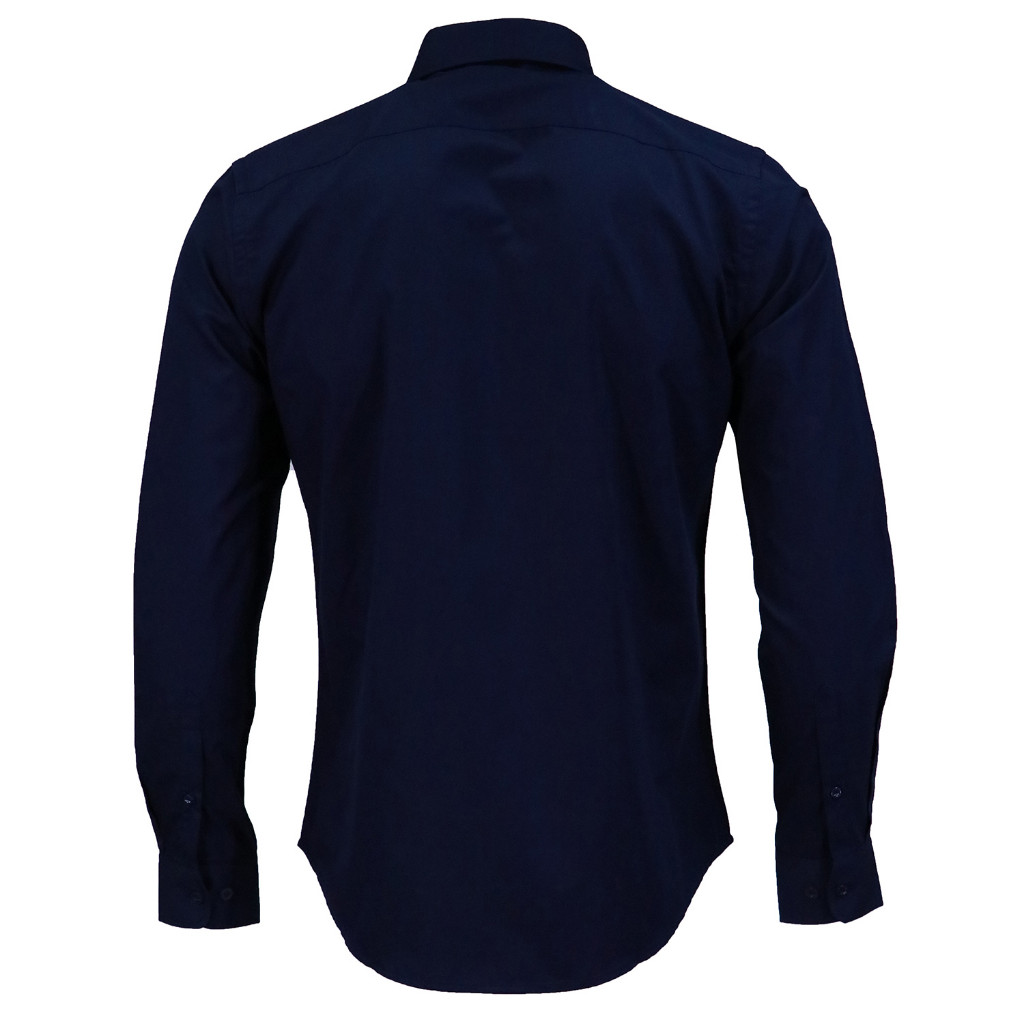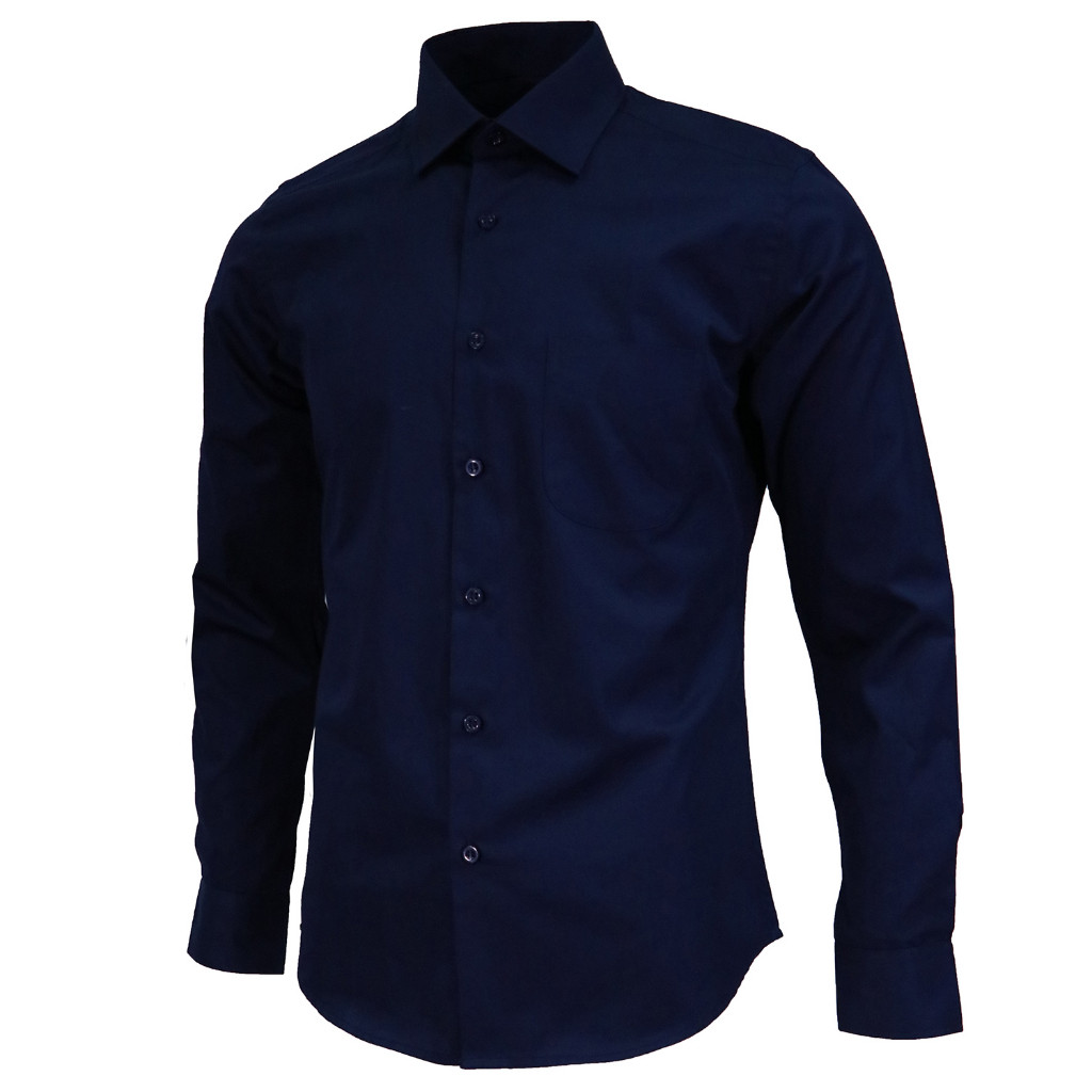 Wall Street Men's Fitted Plain Long Sleeve Shirt w/ Widespread Collar (Navy Blue)
