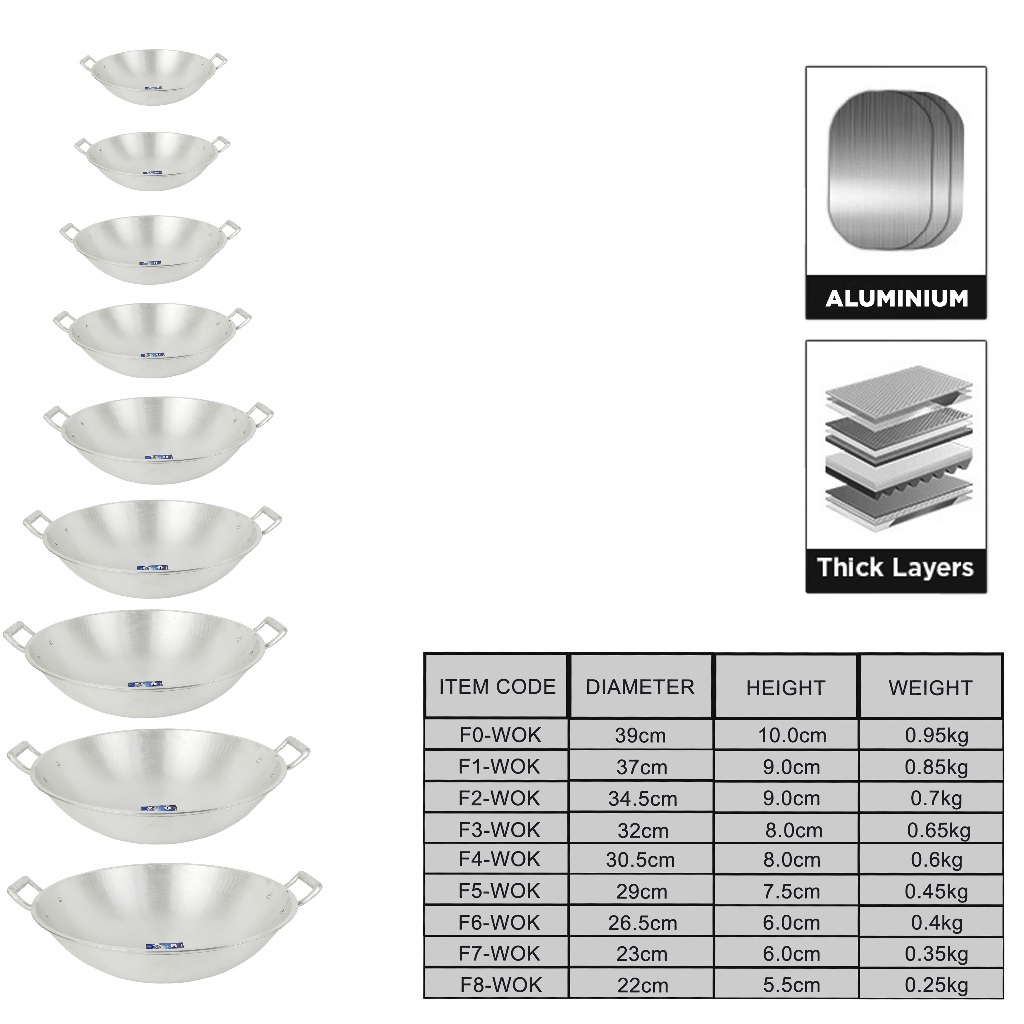 Grand Eagle by Winland Frying Pan Aluminum Double Handle Cookware Wok 280g-880g Capacity