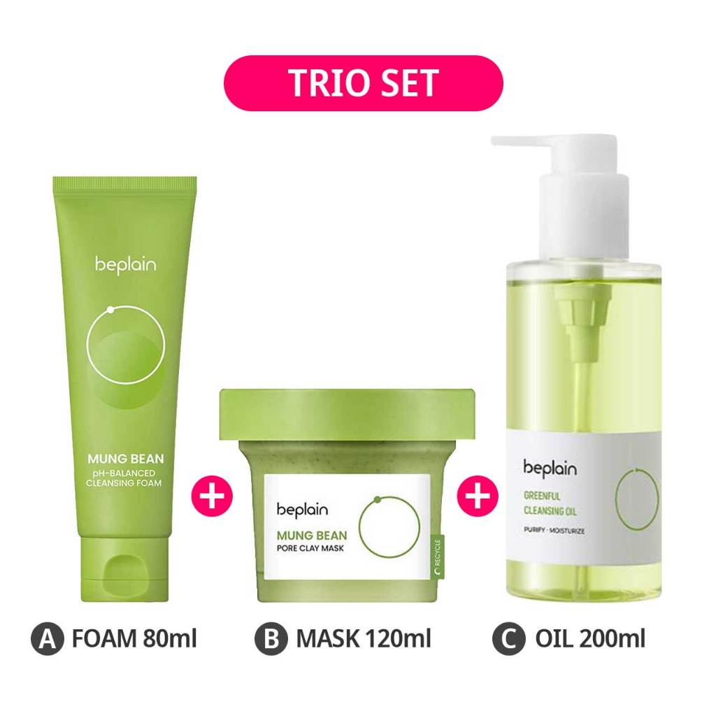 [Beplain] Mung Bean Cleansing Foam 80ml / Pore Clay Mask 120ml / Oil 200ml (Single/Bundle/Set) Olive Young Korea